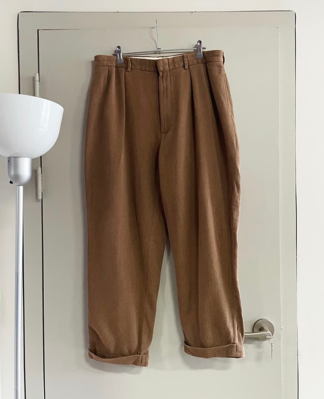 90년대 생산 폴로 랄프로렌 헤비 트윌코튼 치노팬츠입니다. 브라운 컬러감과 투플리츠 디테일의 여유로운 실루엣이 매력적인 제품입니다. 하자 없는 준수한 컨디션이며, 표기사이즈36, 실측 34정도 되는 사이즈감입니다. (허리43 허벅지36 밑위31 밑단22 총장102)