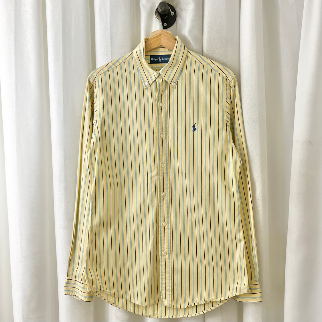 폴로 랄프로렌 옐로우 블루포니 스트라이프 셔츠 사이즈S 어깨43 소매64 가슴52 기장79