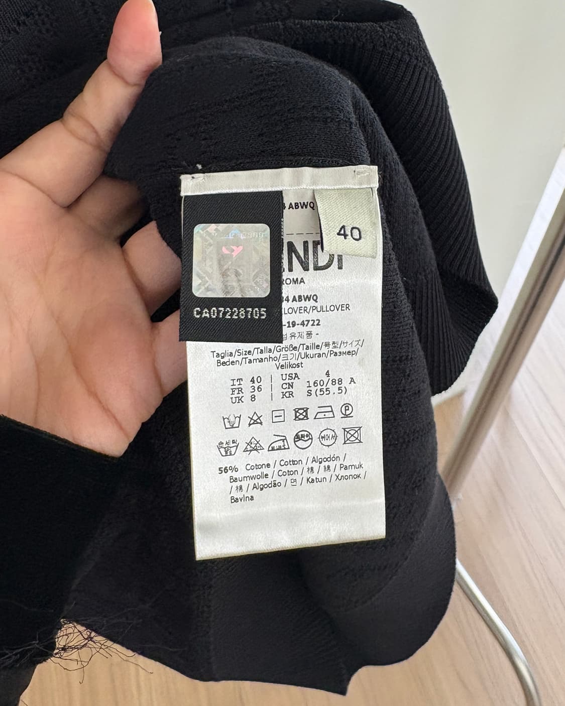 펜디 블랙 주카패턴 코튼 비스코스 하프 니트 사이즈 40 어깨 37.5 소매 22.5 가슴 43기장 54