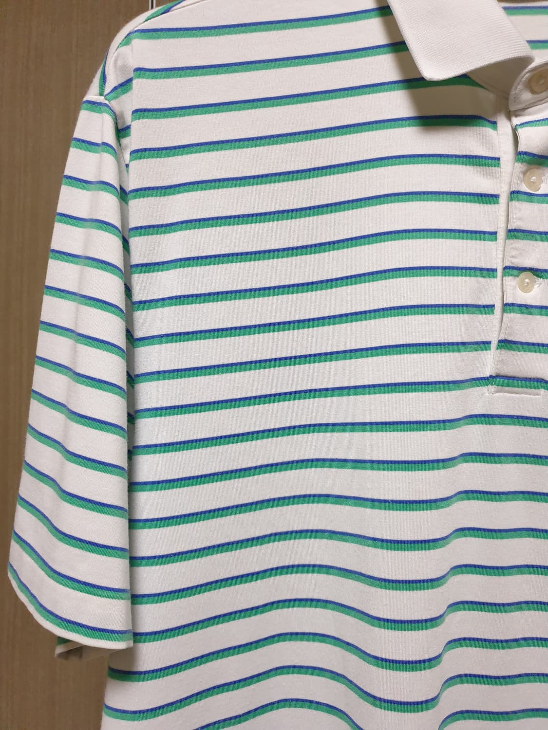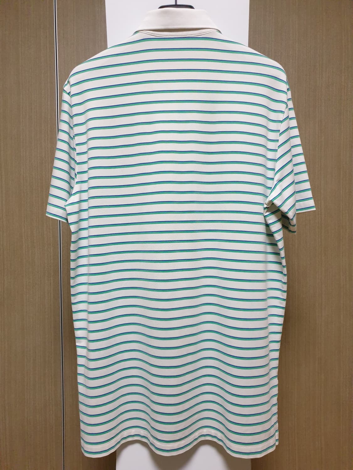 폴로 골프 코튼카라 스트라이프 입니다. 양질의 피마혼방 원단이 산뜻하고 편한 착용감이 좋습니다. 스트라이프 패턴이 위트있는 포인트로 굿입니다. 정사이즈105 추천 어깨50 가슴59 소매26 총장88 피마56 폴리에스터40 엘라스틴4 네고, 택포문의 정중히 차단합니다.
