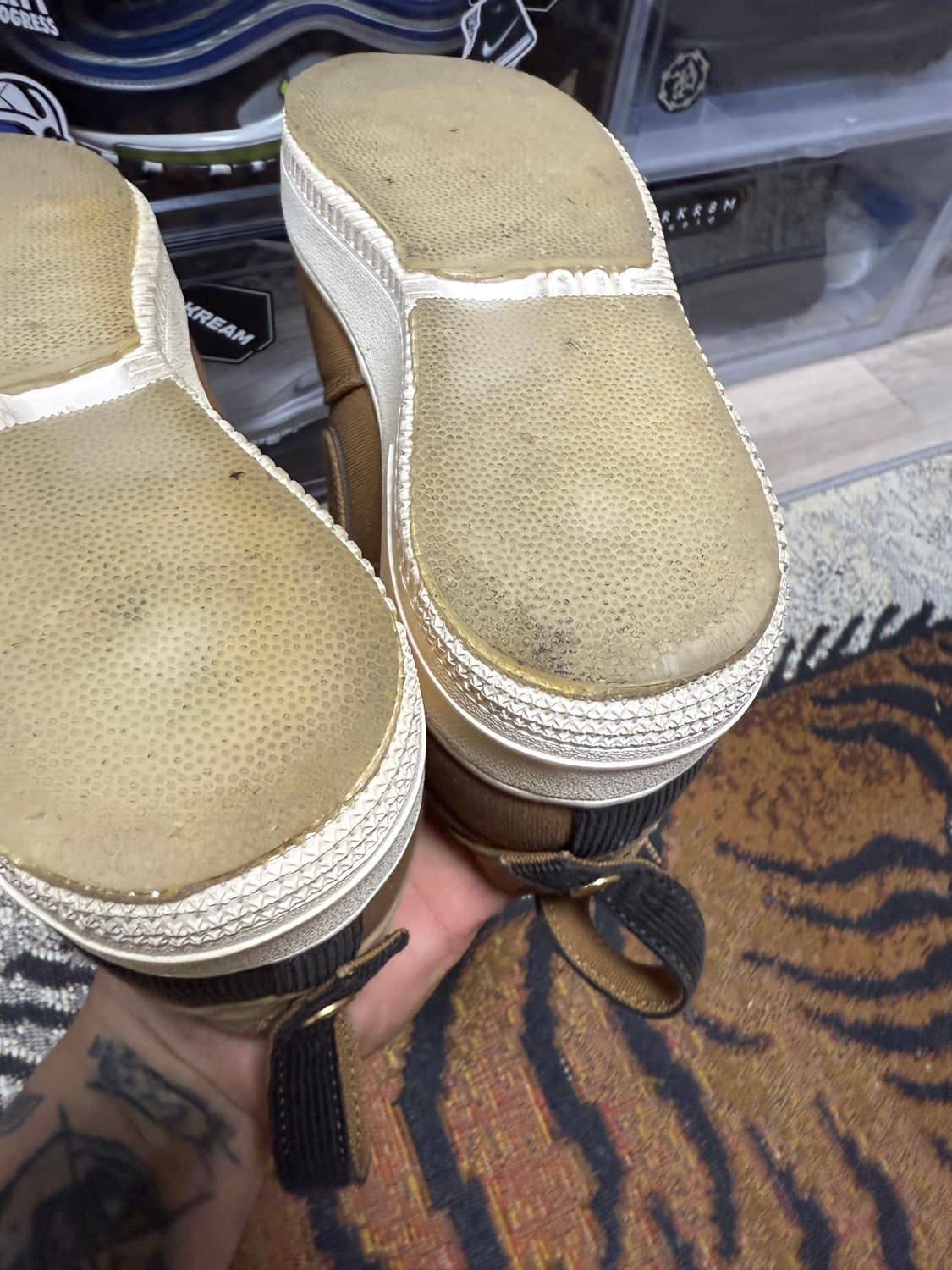 구매후 2회착용 아웃솔 보강해서 갈린곳 없고 외피 오염은 없으나 미드솔 황변이 조금 와있지만 미드솔 자체가 누런? 살색갈? 같은색이라 많이 티가안납니다. 이사할때 박스를 분실해서 박스가 없네요.ㅜㅜ