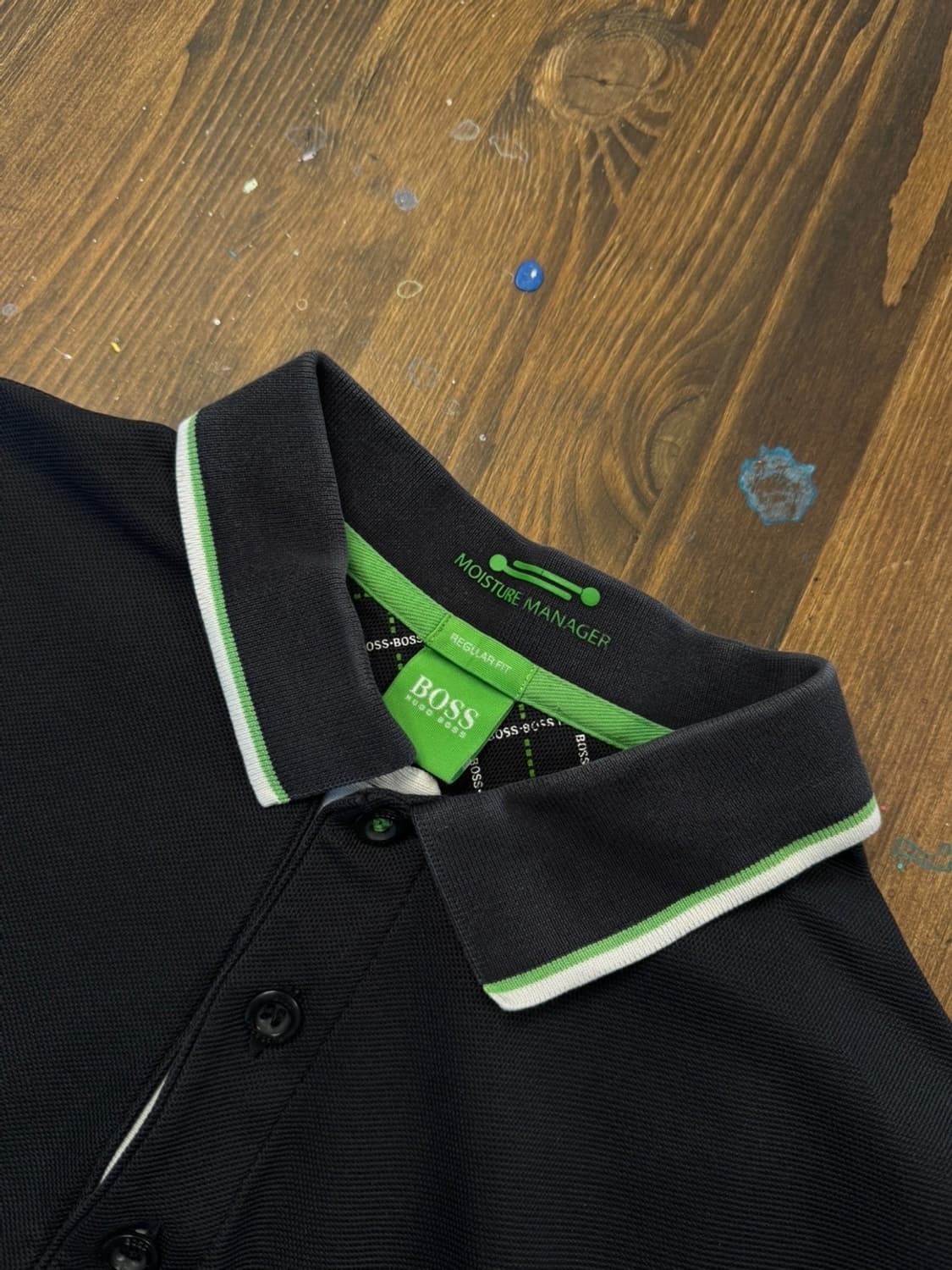 블랙과 그린이라는 생소한 컬러배색임에도 이질감 없이 연출된 휴고보스 그린라벨의 한장입니다. 필드에서 가장 좋겠다만 데님이나 치노와의 상성도 좋은 모델로 사이즈 국내 100 추천합니다. 감사합니다.