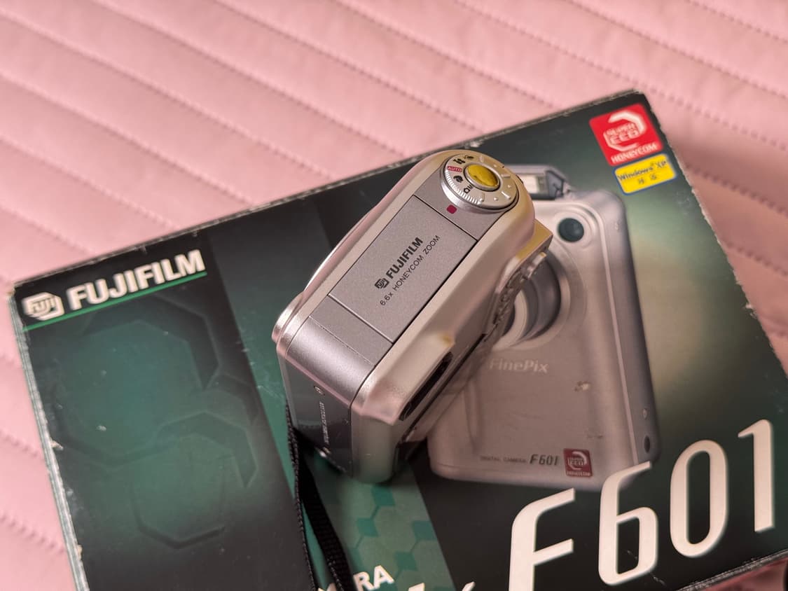 2002년 출시된 fujifilm finepix f601 입니다. 플라스틱이 아닌 금속 합금이라 더 고급스럽고, 유명한 finepix 4700z도 상위 기종이에요! 최대 600만 화소, 36-108mm F2.8-4.5렌즈가 장착되어 있습니다. 2.8부터 시작하는 조리개라 실내에서도 사용하기 좋습니다. 매크로 모드로 근접 촬영도 가능하고 동영상 촬영도 가능해요. 후레쉬도 톡 올라와서 요즘 감성 사진 찍기 딱 좋아요. 일본어로 되어있지만, 파파고 등으로 쉽게 사용하실 수 있습니다. 정품 풀박스 구하기 어려운데, 정품 usb 데이터 케이블이 포함이라 스마트미디어카드를 뺐다 꼈다 하지 않아도 됩니다. 배터리는 모두 소모된걸 확인하여 별도로 2개 구매했고, 별도로 구매한 충전기, 충전선까지 함께 드립니다. 바로 사용하실 수 있는 구성입니다. 구성품 - 박스 풀셋, 128mb 스마트미디어카드, 별매 충전기, 배터리 2개 환불X 당근, 번개장터 외 외부거래X 카카오톡 X