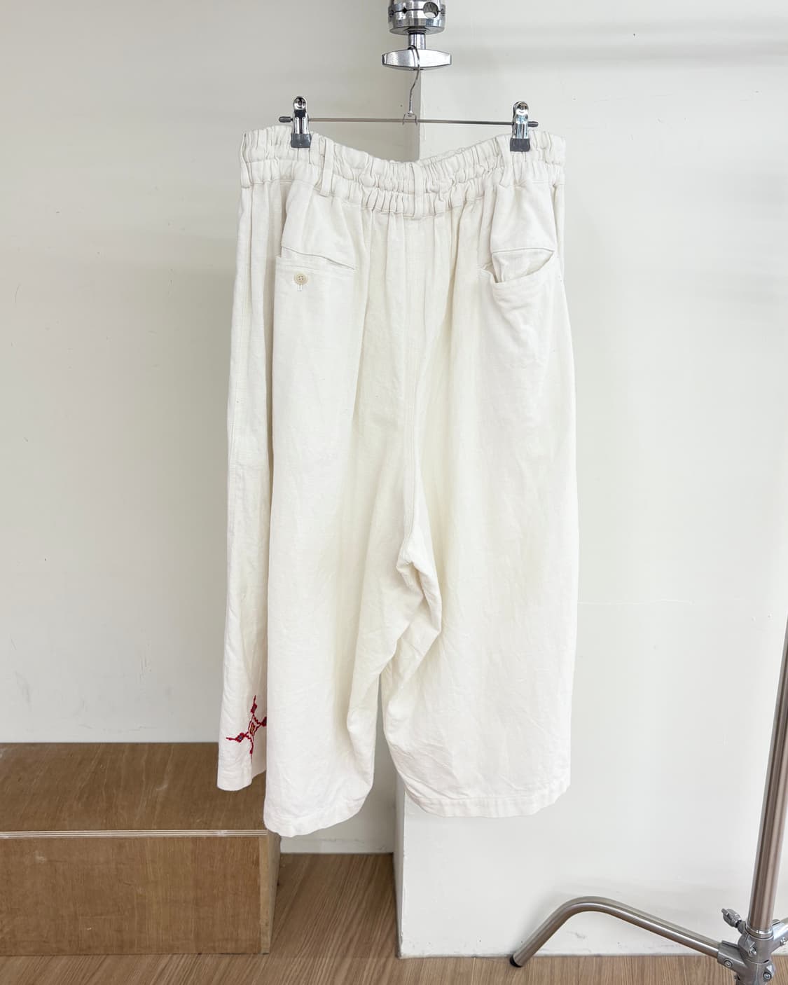요지 야마모토 S'YTE 22AW 아이보리 엠브로이드 코튼 밴딩 팬츠 사이즈 3 허리단면 37 밑위단면 43 허벅지단면 53 기장단면 81