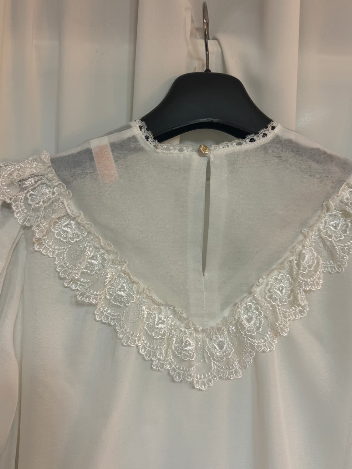 리얼 미국 빈티지로 추정되는 우아한 드레스입니다 넥라인, 소매, 밑단까지 레이스가 풍성해요 허리는 널널하게 여유있는 드레스이지만 끈으로 라인 잡아서 입으셔도 좋습니다 어깨는 55-66 까지 좋습니다 품이 넉넉해서 만삭사진 촬영용으로도 추천드립니다 왼쪽 겨드랑이쪽 박음질 튿어진 부분 사진으로 확인해주세요 어깨 38 가슴 46 허리 ~67 총장 129