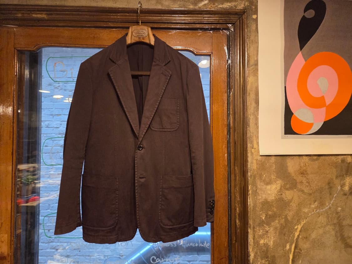 가먼트워싱을 통해 오묘한 톤의 브라운색감을 남긴 시피컴퍼니의 스포츠코트입니다. 아웃포켓으로 낸 웨어러블한 지점하며 부드러운 코튼의 풍성한 질감을 편히 누리며 지적인 태도 취하시길 바래봅니다. 사이즈 100 권합니다. 감사합니다.