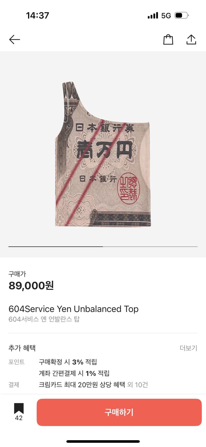 604서비스 엔 언발란스 탑 착용1회 [KREAM] 604Service Yen Unbalanced Top https://kream.co.kr/products/317548 원가 89000원