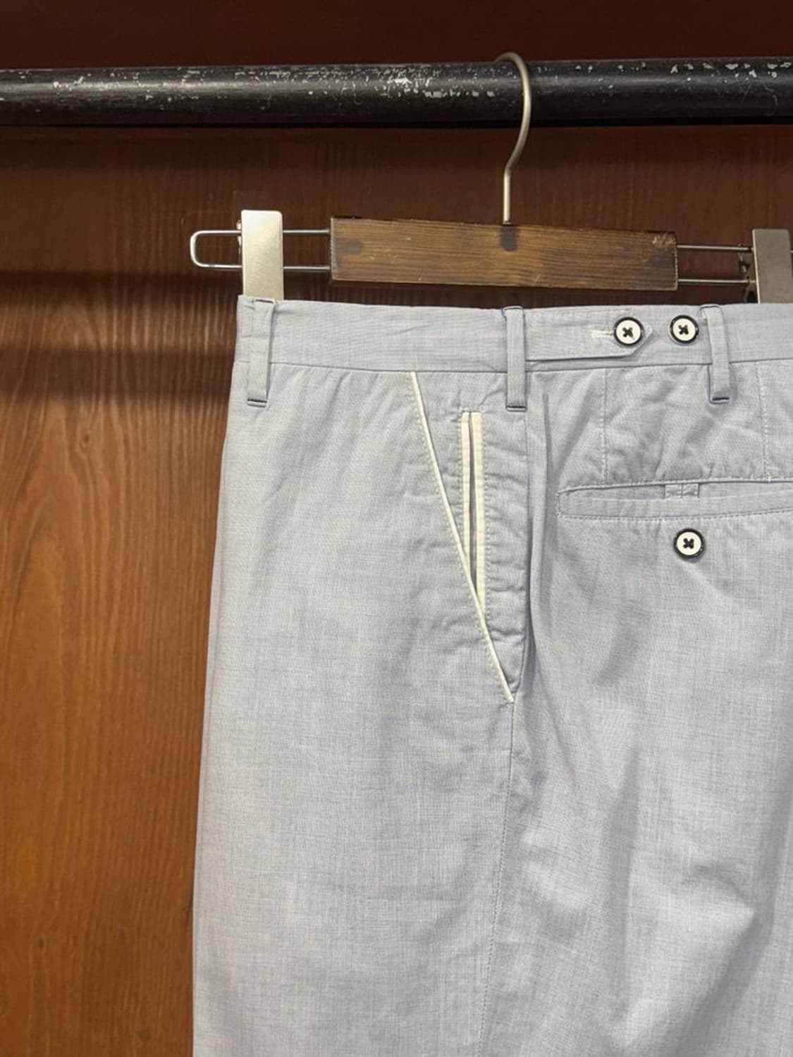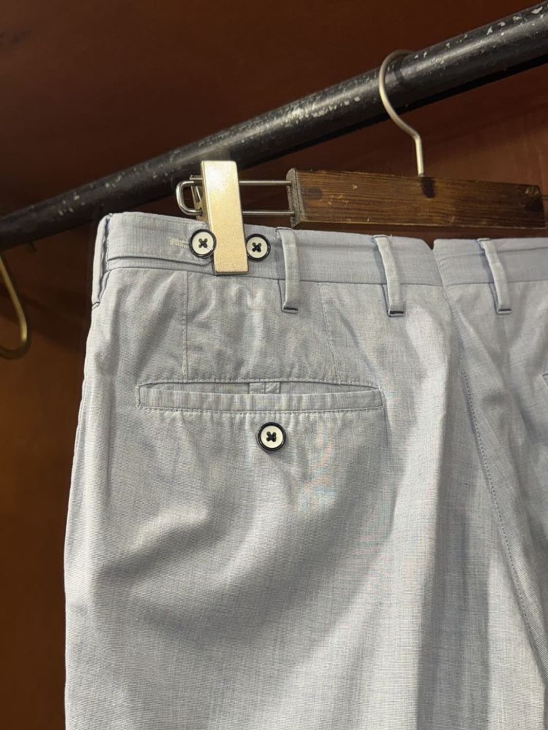 랄프로렌 퍼플라벨의 재단을 담당했던 이력을 증명하기라도 하듯 편안한 무드로 재단된 꼬르넬리아니 한 장입니다. 고급스러움을 지니고 있어 말 그대로 세련된 세퍼레잇착장에 방점이 될 만한 모델입니다. 사이즈 국내 30 추천합니다. 감사합니다. 측정사이즈 (단위 : cm, 단면기준) 라벨사이즈 허리 밑위 허벅지 총장 밑단 46 39 (31 인치) 26 31 100 21 상품 코드 A01591 상태 : A ( 상태 좋음 ) 패브릭 : 코튼 99 엘라스틴 1 색상 : 라이트 블루 판매점 : 매장 사이즈 : 46 실측 사이즈(cm) : 허리 : 39 (31 인치) 밑위 : 26 허벅지 : 31 총장 : 100 밑단 : 21