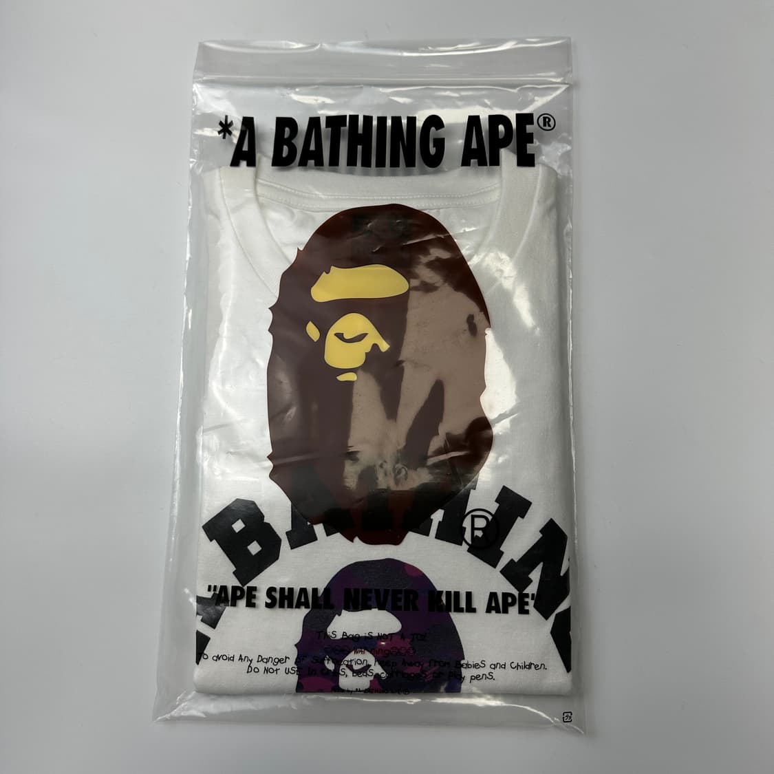 베이프 핸드 드로우 패턴 사이드 빅 에이프 헤드 티셔츠 화이트 퍼플
