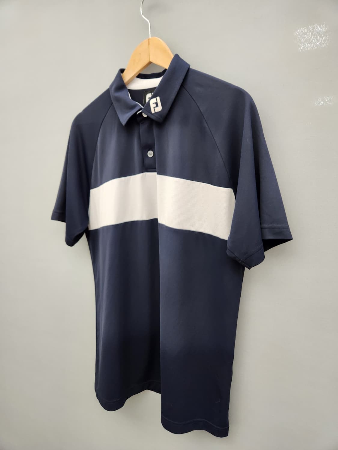 풋조이 반팔 카라티 입니다 신축성 있구요 컨디션은 보통이라서 저렴하게 올립니다 사이즈는 105이고 103~105정도 입니다 가슴단면 57 기장 75 정도 나오네요 참고해주세요