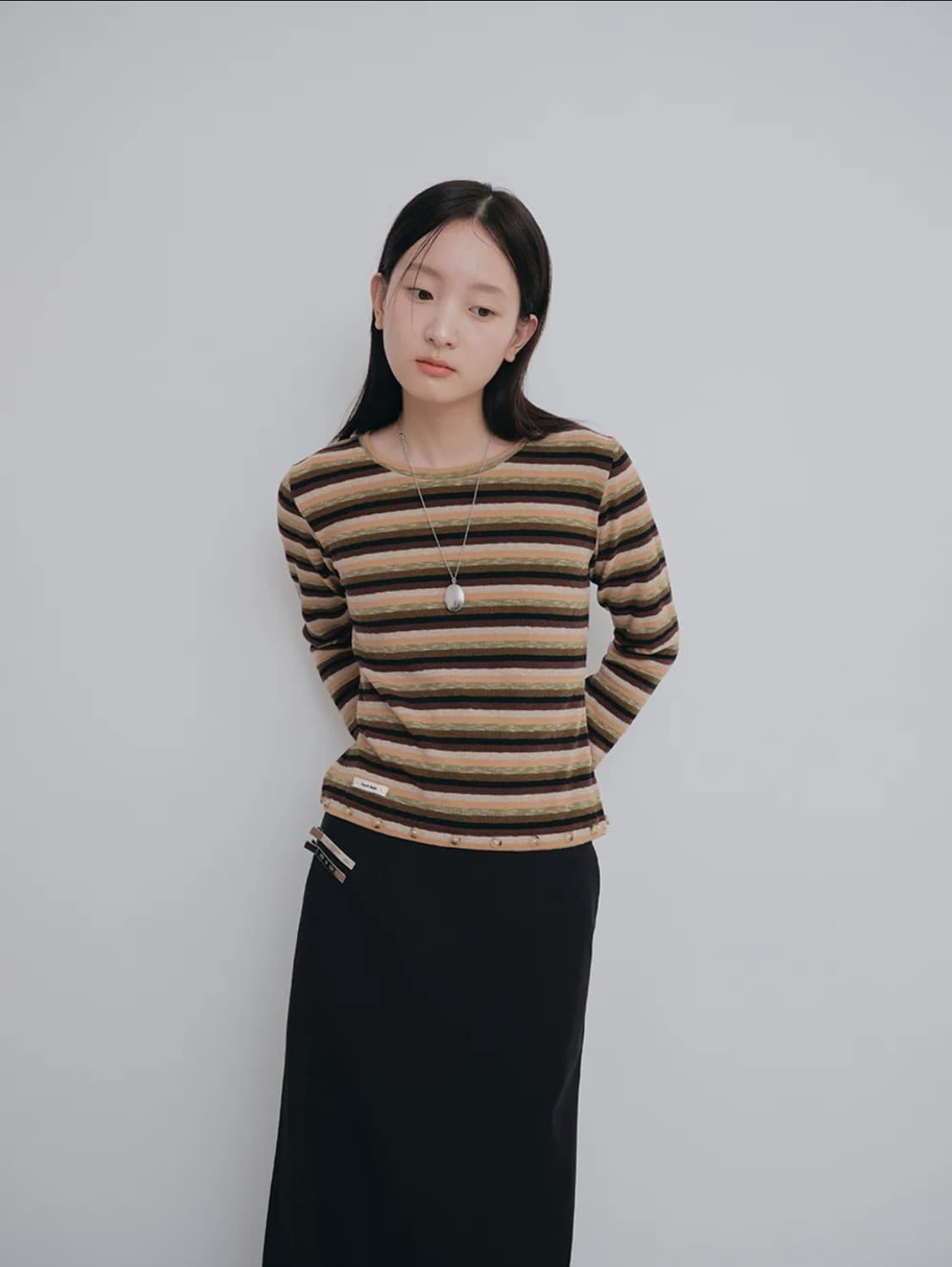 so 러플 세트 티셔츠 SO Ruffle Set T-shirt (brown tripe) 택만 뗀 새상품 스카프로 다양하게 연출해서 입을 수 있어요 실물이 훨씬 예뻐요