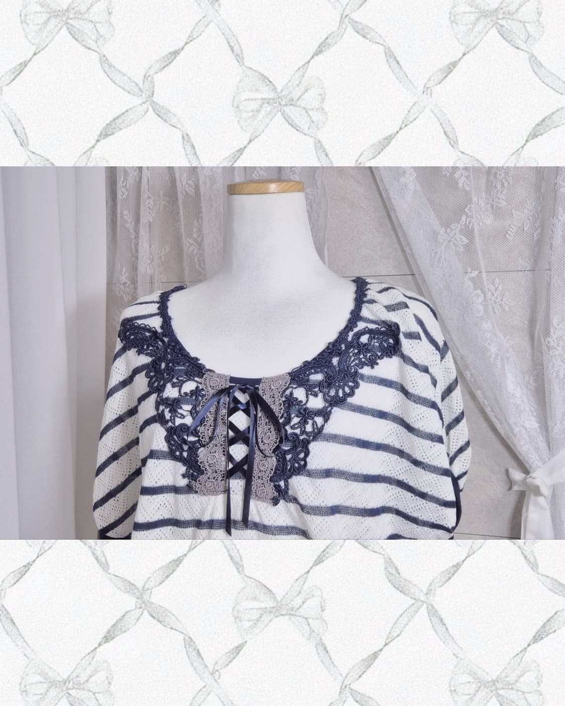 • 빈티지 엑시즈팜 리본 로걀탑 레이스 베스트 세트