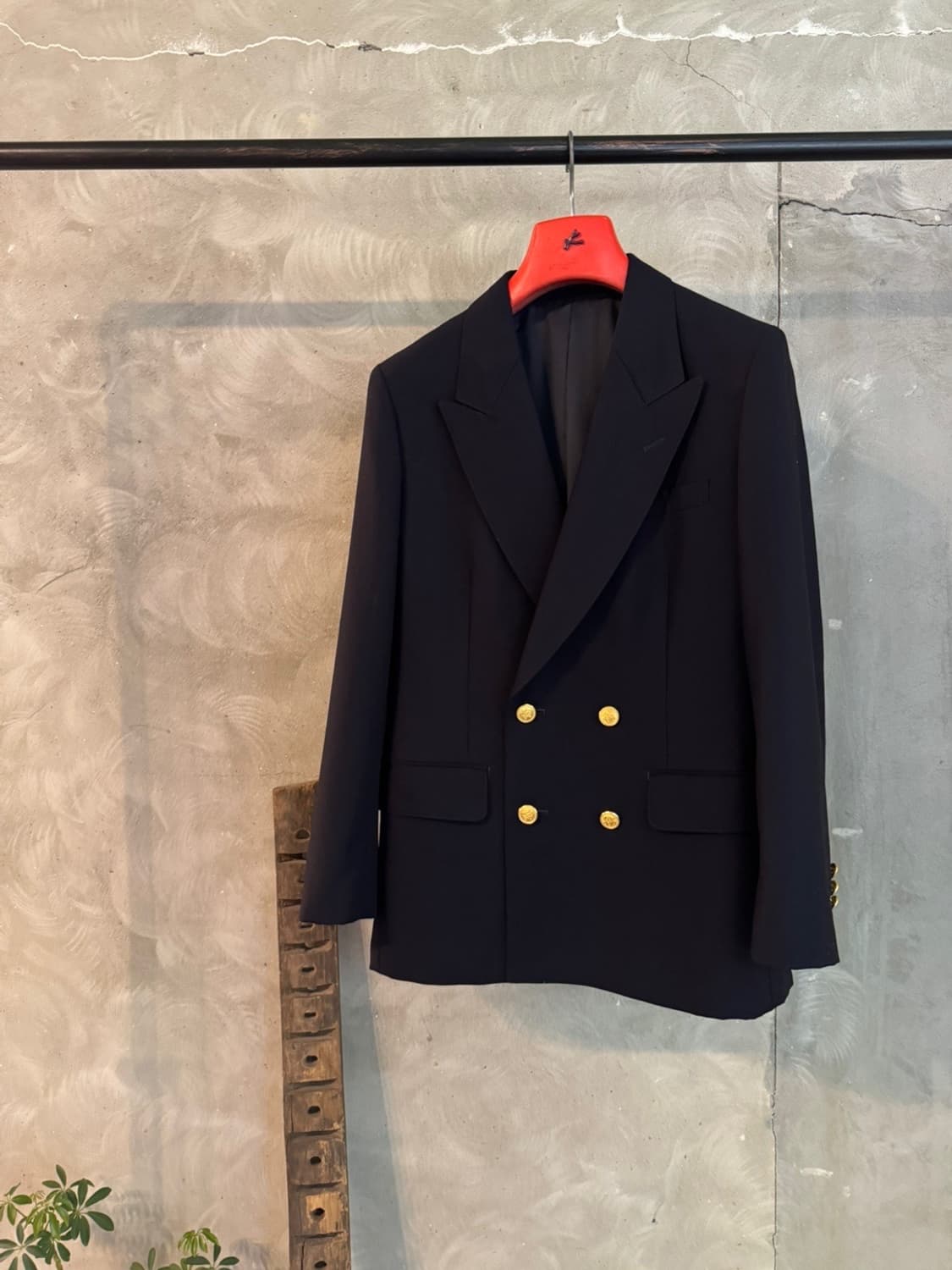 네이비톤의 발색감 좋은 패브릭으로 고전적인 만듦새 그대로를 재현한 제이프레스의 금장블레이져입니다. 사이즈 국내 여성 66ㅡ77 추천합니다. 감사합니다.