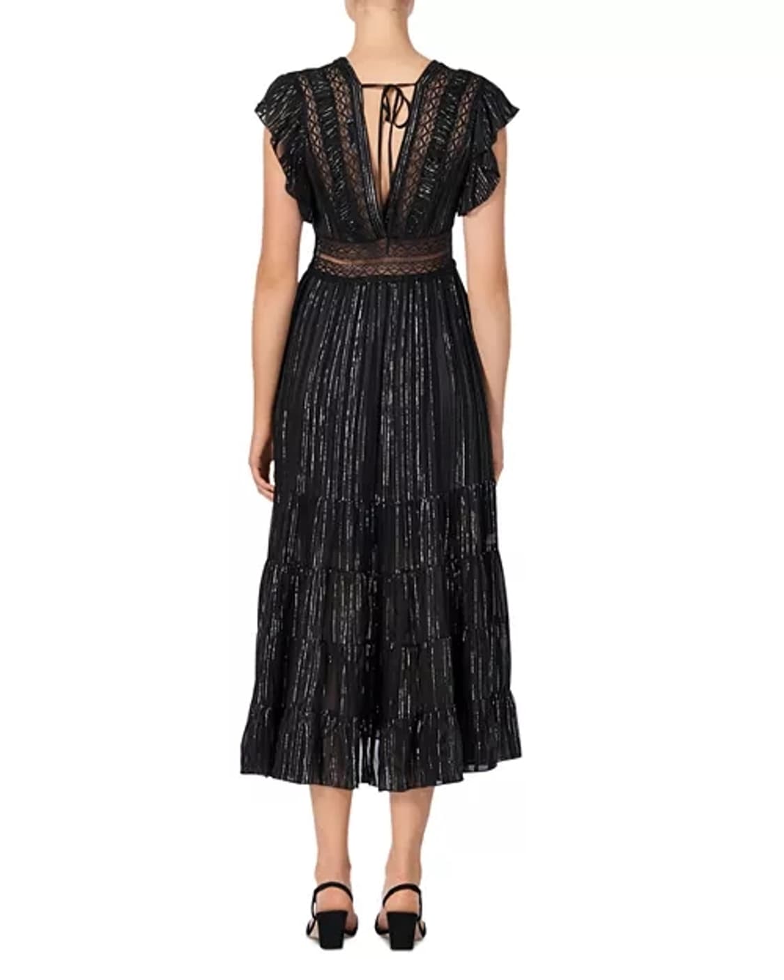 (새상품) 산드로 메탈릭 실버 스트라이프 블랙원피스 40사이즈