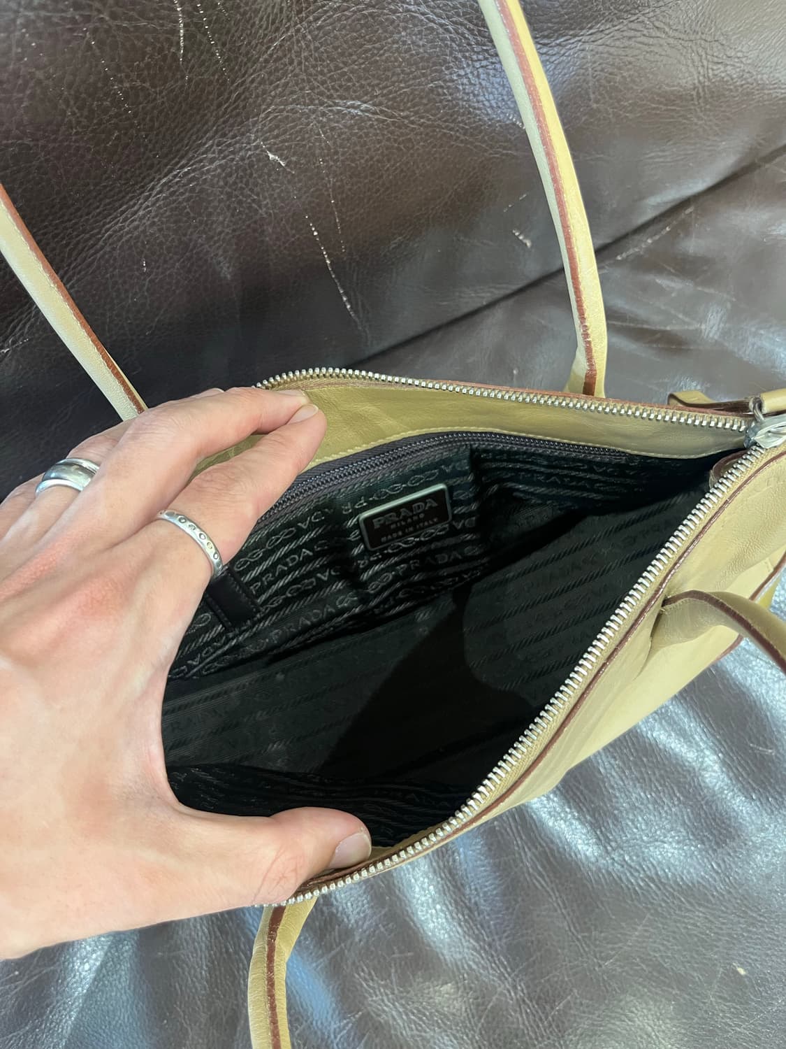90년대 후반 프라다 백 천연가죽 / 페이턴트 레더 소재의 바닥 밑 부분의 세월에 의한 오염이 있으니 참고 부탁드립니다 -condition : B+ -size : 가로 30 세로 17 (손잡이제외) -vintage 특성상 오염 및 데미지가 존재할 수 있으며 참고하시어 신중한 구매 부탁드립니다. -실측은 1-2cm 오차가 있을 수 있습니다.