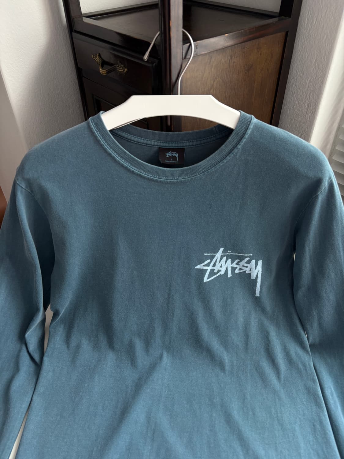 Fabric - 코튼 100% Condition - 하자없는 좋은 상태입니다. Size - 어깨 46 가슴 49 소매 64 총장 72 (cm) Comment - 스투시의 롱슬리브입니다. 면 100%가 주는 편안한 착용감과 자연스러운 피그먼트 다잉이 매력적인 제품이에요. 남성 스몰사이즈로 유니섹스 착용가능하며 여성분이 착용하면 라지사이즈 정도되겠네요. Detail 두께 - 보통 여밈방식 - x 신축성 - x 비침 - x 포켓 - x 안감 - x 패턴- x