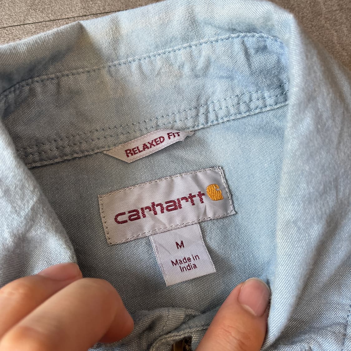 No.9050 #도떼기구매가능 Carhartt Original denim shirt 칼하트 오리지널 데님 긴팔 셔츠 입니다. -사진에서 보시듯이상품 자체가 매우 양호하게 보존되어 있습니다만 카라, 정면 미세 오염 있습니다 -사이즈 남성 M 추천드립니다. •Price - 47,900 •Color - denim •Size - M 총장 앞76 뒤77 어깨49 가슴59 팔길이67(cm) •측정위치에 따라 1-3cm 오차가 있을 수 있습니다. •모든 상품 세탁, 고온 스팀이 완료 된 상품입니다. •배송전에 한번 더 스팀 작업 진행합니다. •구매 전 공지사항과 사이즈를 다시 한번 확인 부탁드립니다