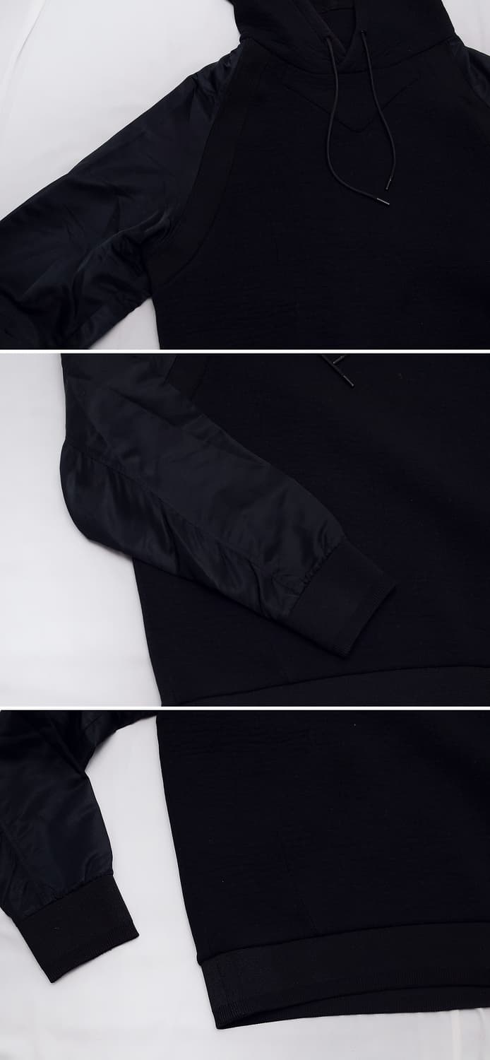 준지 (JUUN.J) 시그니처 절개 패턴 투톤 배색 후디 당연히 정품 우영미.송지오와 함께 우리나라를 대표하는 하이엔드 명품 남성복 디자이너 정욱준의 브랜드 준지의 시그니처 절개 패턴 투톤 배색 후드티셔츠 입니다. 몸판 소재는 네오프렌 느낌의 레이온.폴리우레탄 혼방된 소재로 약간의 두께감과 탄탄한 형태감에 준지 고유의 입체적 절개 패턴으로 전체 실루엣 잘 잡아주고 네글런 소매 타입 팔 부분은 얇고 가벼운 광택감 있는 폴리에스터 소재 투톤 배색으로 되어있어 활동성 좋습니다. 실착시 특유의 오버한 준지핏 지나치게 과하지 않은 스트릿 느낌 오버핏 스타일로 봄.가을 간절기에 조거팬츠나 버뮤다 팬츠등과 매치해 입기 좋고 오버한 스타일 자켓과 매치해 가을.겨울철 이너후디로 멋스럽게 입기 좋습니다. 표기 사이즈 48 실측 가슴단면 58 팔길이 총 76-77 (일반 어깨선 기준 62-63) 총장 69-71 정도로 일반 국내 사이즈 기준 넉넉 100 정도 보시면 될거 같습니다. 보통 체격 남성분들 멋스럽게 오버한 준지핏으로 편하게 입기 좋습니다. 자연스러운 착용감 워싱감 정도 있으나 다른 옷들 많아 돌려가며 입는 편이라 눈에띄는 파손.훼손없이 전체적인 상태 양호합니다. 직거래 장위동 원천주유소인근 가능 중고 제품들이니 더 꼼꼼히 잘 보시라고 나름 신경써서 사진 찍어 올립니다. 개인 중고 거래 특성상 교환.환불 불가하니 꼼꼼히 보시고 연락주세요 사진 및 설명 도용하는 되팔이 및 3자 거래 사기꾼들 발견즉시 신고 및 차단.박제 합니다. 정리 처분 목적이라 빠른 거래나 복수 구매시 적당히 절충 가능합니다