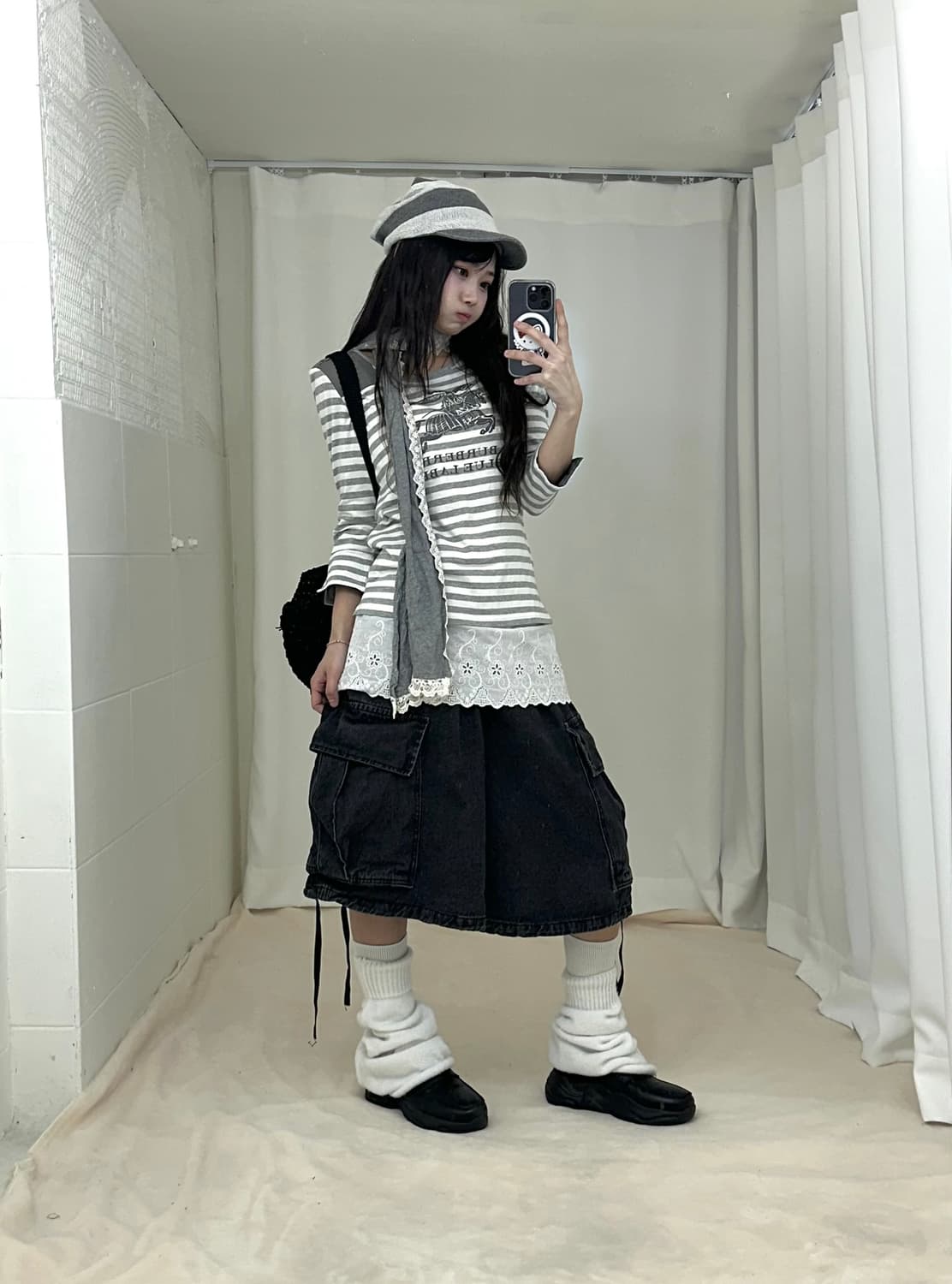 🤍모든 착장 판매상품🤍 코디 세트 구매시 할인 • outer : 갭 케이프 가디건 - 4.9 • top : 버버리 스트라이프 빅로고 롱슬리브 - 11.9 • one-piece : 빈티지 화이트 레이스 원피스 - 3.8 • bottom : 빈티지 와이드 하프 팬츠 - sold out • acc : 빈티지 레이스 코튼 스카프 -2.0 #스윙홍대구매가능