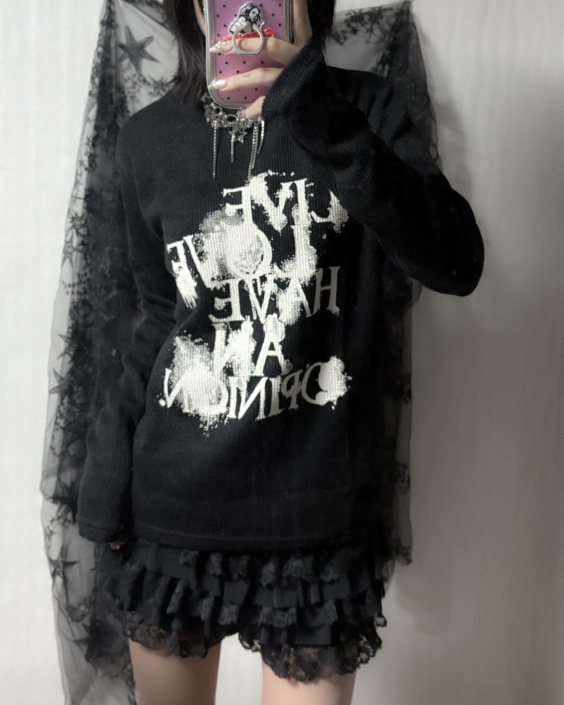 ✪ punk y2k printed knit price : 42,000 ✯ condition : A shoulder 39 chest 44 length 60 c♡ntact = 💌
