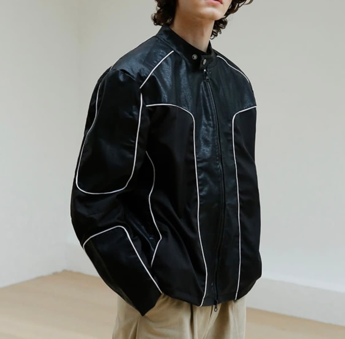 서로 다른 원단이 파이핑 처리되어 어우러짐에 있어서 이질감이 없습니다 오히려 복잡하지 않고 심플해 보인다는 게 첫인상! 디테일이 살아있는 디자인 꼼꼼히 봐주십시오 비건레더이지만 멋스럽게 사용감이 깃든 정도로 훌륭한 컨디션입니다 ✔️기장 63/어깨 50/가슴 61/소매 65/제품 표기 L