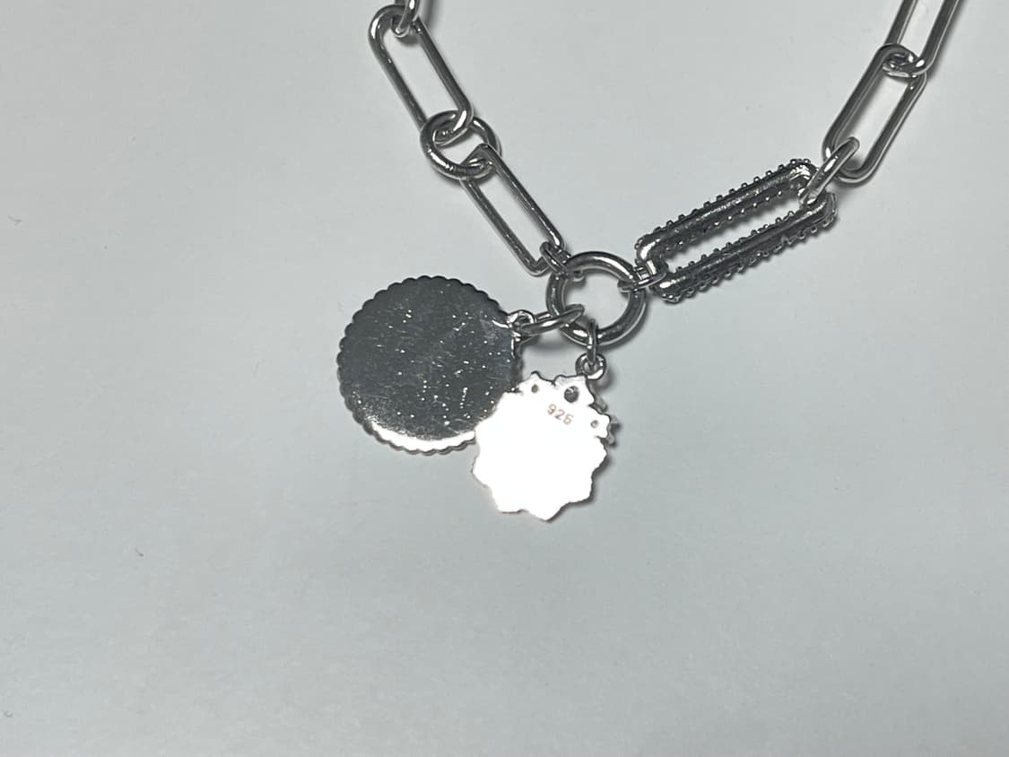 ***귀찮으셔도 꼭 설명 잘 읽어 주세요*** ✔ 구매 하실 분은 바로 결제 주시면 됩니다! ✔ 설명으로 충분하니 질문 안받습니다. ✔️ 정직하게 시간약속 잘 지키고 택배 잘 보내드립니다. ✔️ 가격 고정(가격 인하 안함) ————————————————————— 뉴욕 여행갔을때 편집샵에서 구매한 팔찌 입니다. 무슨 브랜드 였는데 저는 잘 몰라서 예뻐서 구매했던 팔찌에요. 925실버 소재라서 물 닿아도 됩니다. 지르코니아 큐빅 세팅이 세밀하게 들어간 부분이 있어서 주의해 주시면 됩니다. 예를들어 물에 닿는건 괜찮지만 바로 닦아주심 되요. 디자이너 브랜드인데 저는 모르는 브랜드지만 2년전에 구입한거라 영수증이랑 박스는 이사할때 없어진것 같아요. 근데 퀄리티는 좋아요! 메달모양 팬던트랑 동전모양 팬던트 두개가 들어간 팔찌인데 작은 팬던트 지름은 1cm 이고 큰건 지름 1.5cm 입니다. 사슬 체인도 1.3cm x 8mm 크기 입니다. 구매할때 180달러 정도 주고 구매 했는데 당시 환율 24만원 정도 했었습니다. 실버인증하는 925 각인 있어요. 촬영용으로 쓰신다는 분도 계셨는데 안팔고 가지고 있었습니다. 근데 계속 보관망 하니 착용을 안할것 같아 이제 판매 합니다. 배송비 3400원 반값택배 1900원이고 반값택배 변경 원하시면 결제 전에 채팅 주시면 바꿔 드립니다