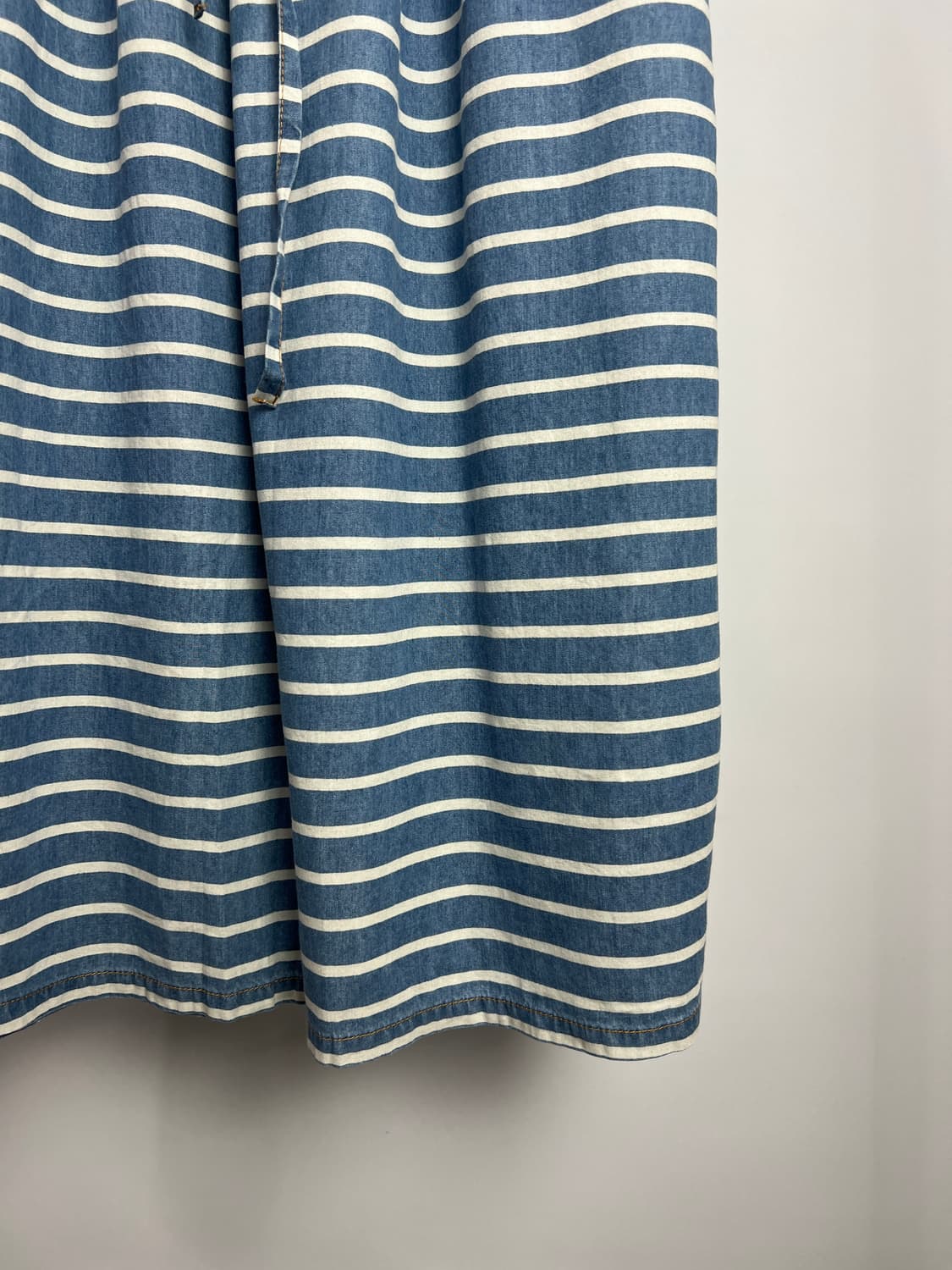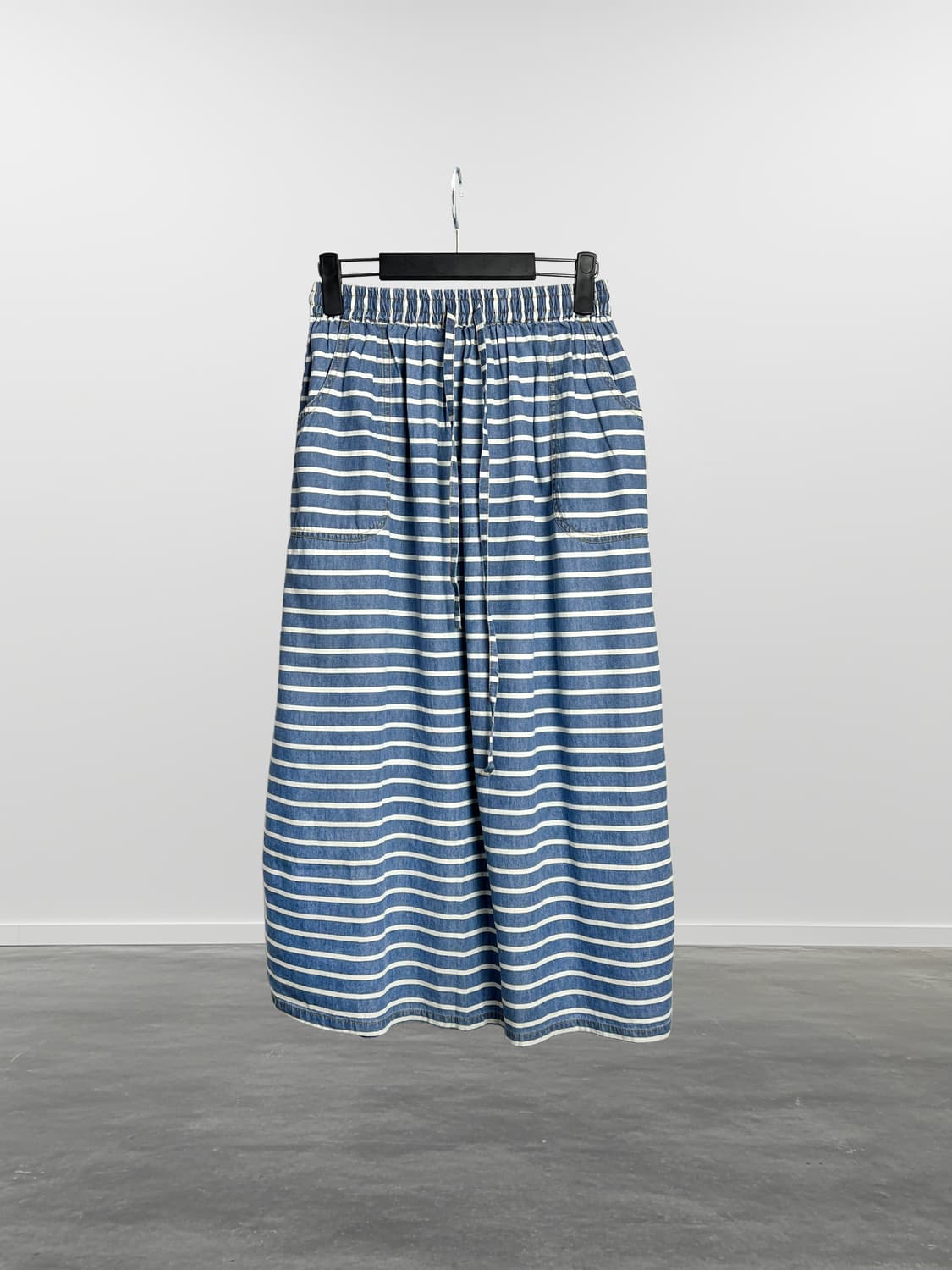 11099 허리~47 총장84(cm) 스트라이프 롱 스커트 입니다. 코튼 소재이며 허리 밴딩으로 신축성 존재하고 끈이 있어 조절 가능합니다. 택달린 미사용품으로 입고 되었습니다. 사이즈는 실측을 참고해 주세요!