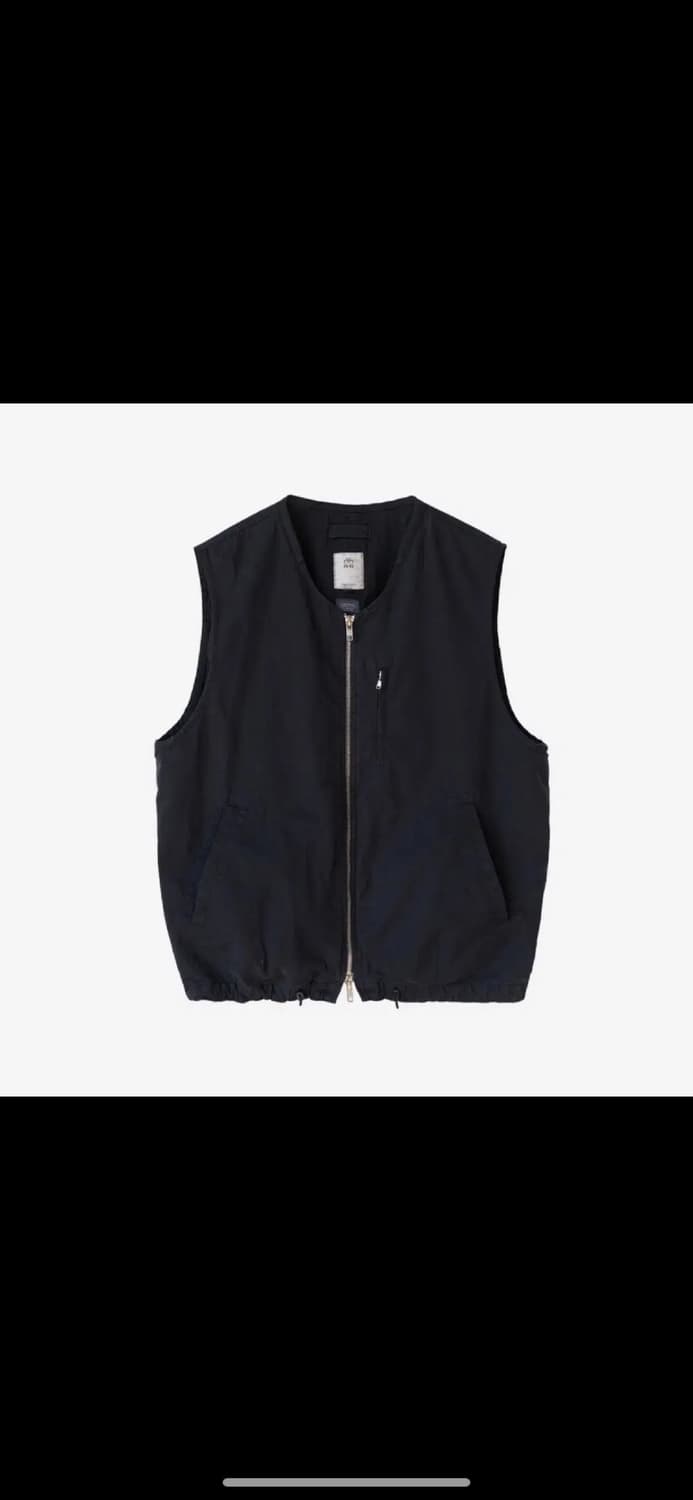 cotton vest - dyed dark navy 2사이즈 1회 착용 스타일 변화로 판매합니다. 델 파카 비롯, 다양한 아우터와의 레이어링 아이템으로 이너/아우터 폭 넓게 사용하실 수 있습니다. 다잉 워싱이 적용된 제품입니다. 새상품 컨디션을 원하시면 구매를 권장드리지 않습니다. 2사이즈 - 어깨42 가슴58 총장62 구성품 : 더스트백 , 택 ,옷걸이