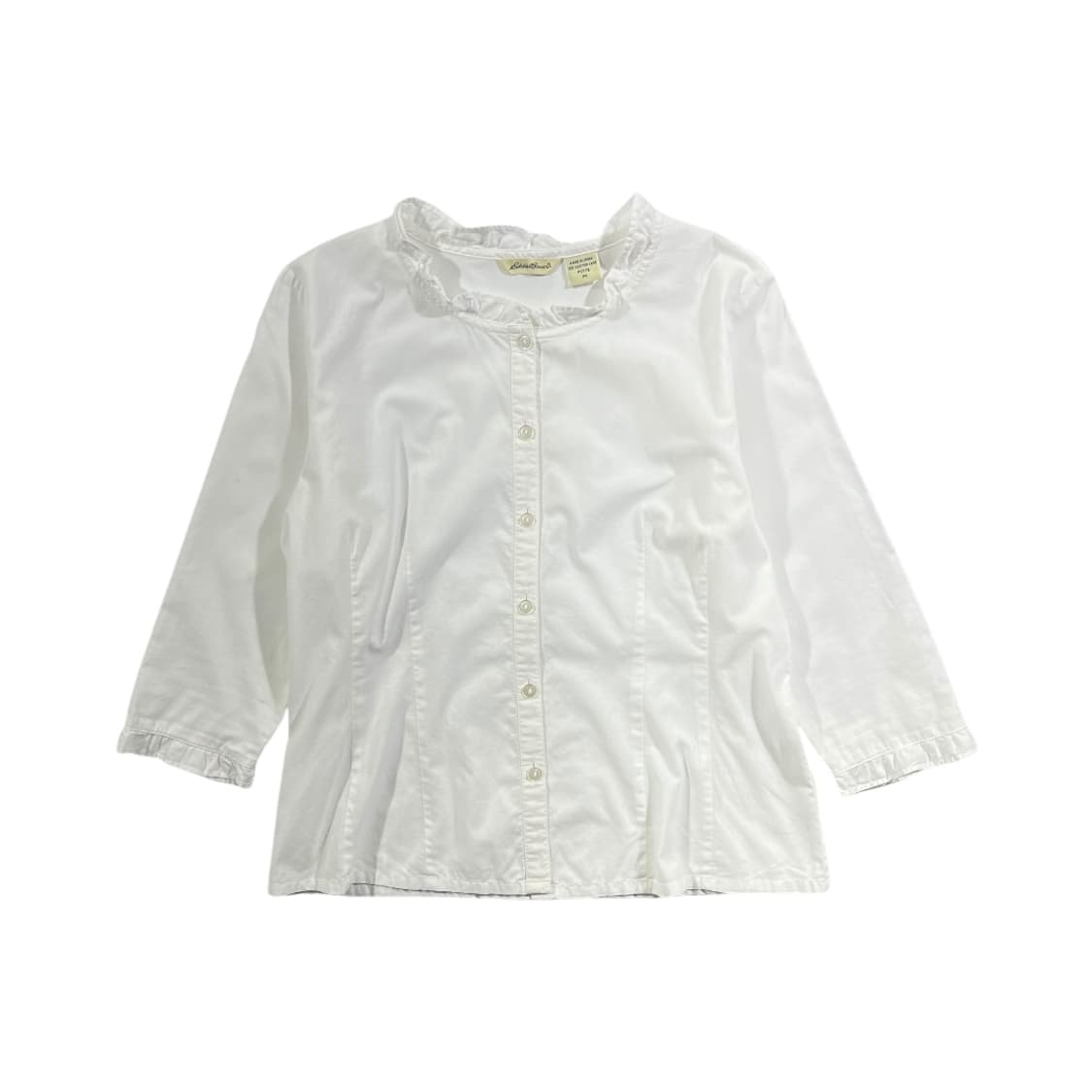 [Eddie Bauer] 에디바우어 프릴 코튼 블라우스 ₩ 29,000 ✔색상: 화이트 ✔주 소재: 면 ✔사이즈: 어깨/가슴/팔/총장 ✔ M: 38/46/41/55