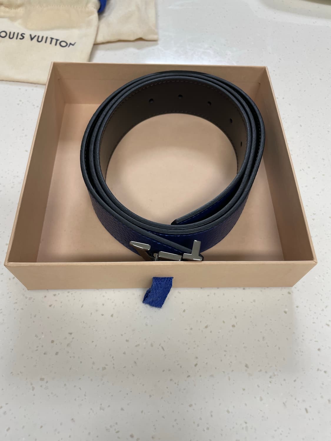 19년도에 구입한 루이비통 벨트입니다. 구매한뒤로 두번정도 착용한 거의 새제품입니다. 양면의 색상이 달라 두가지 버전으로 사용하실 수 있습니다. 실측 사이즈: 100cm