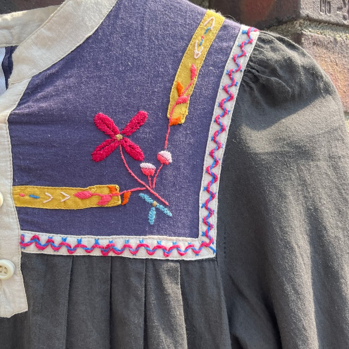 - 귀여운 자수 원피스 - made in india - 뒷부분 지퍼를 이용해 탈의 < 어깨 38 / 가슴 50 / 소매 57.5 / 총장 107 (CM) >