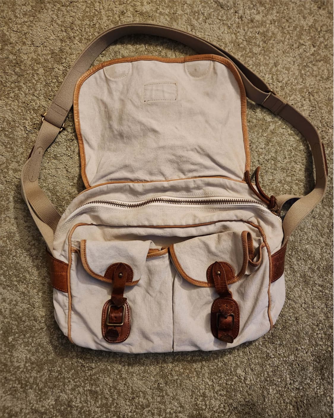 https://www.instagram.com/p/DJhJoC9hFbf/ 팔로워>> 무료배송 팔로워+재구매>> 소정의 할인 가능합니다 평일 오전 중으로 구입 시 당일 발송 제품 상태 상태: 사용감 많음 사용에는 문제 없는 컨디션 사이즈 가로: 35cm 세로: 17cm 높이: 25cm 제품 설명 브랜드: Nigel Cabourn (나이젤 카본) 제품명: 코튼 × 레더 베이지 숄더백 특징: 빈티지 텐트 원단을 연상시키는 두툼한 코튼 캔버스 소재 부드럽게 에이징된 천연 가죽 스트랩과 트리밍 메인 플랩 내부 지퍼 포켓 및 전면 더블 포켓 구성 바닥 부분은 가죽 보강 처리로 내구성 향상 고리, 리벳, 지퍼 등 디테일 하나하나 빈티지 아웃도어 감성 반영 실용성과 스타일을 모두 갖춘 디자인 색상: 베이지 × 브라운