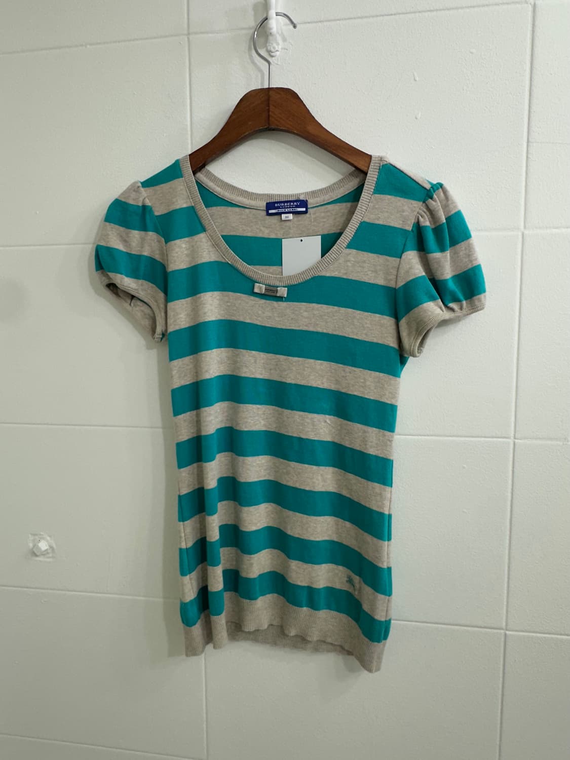 버버리 블루라벨 퍼프 스트라이프 리본 반팔 티셔츠 -9.9