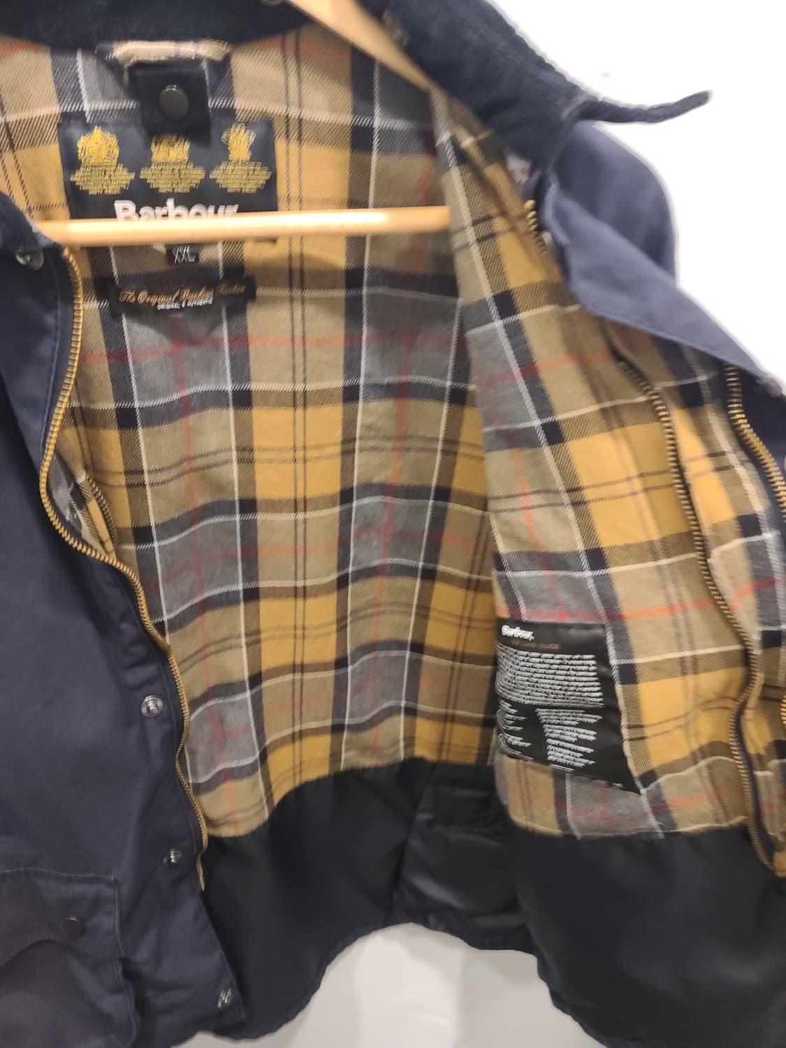 바버 비데일 키즈 XXL 사이즈 네이비 색상입니다 성인여자 55.정도 입으실수있습니다. xs사이즈 상태는 사진 참고해주세요. 사용감 많습니다. 눈에띄는 얼룩이나 찢어짐.단추 지퍼 하자 없습니다. 왁스끼 다빠져있네요.
