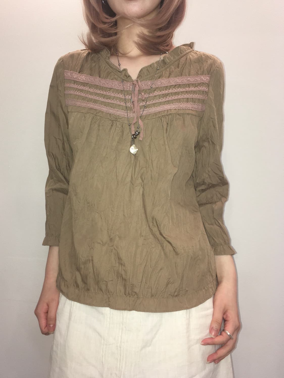 -jpn vintage romantic khaki brown blouse -옆지퍼 오픈클로징 •Brand The day’s •size 어깨 42 가슴 49 소매 47 총장 57 •fabric 폴리60 코튼40 🤍0326
