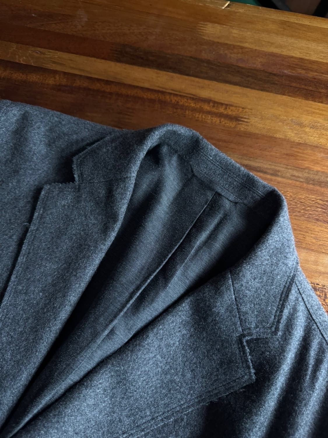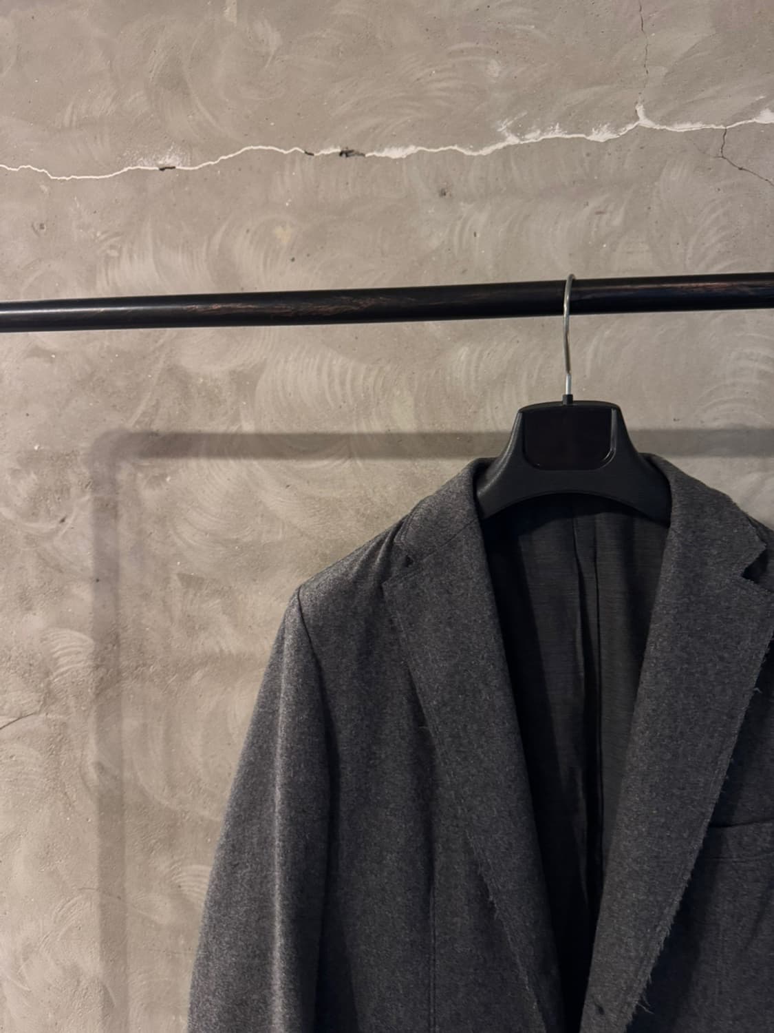 단순성으로 표현되는 기하학적 추상이나 기능미를 배제하며 기본적인 조형요소 사용하여 실루엣으로 명료하게 드러냈던 시절의 질샌더입니다. 그녀의 전성기 시절이였던 00년대 초반의 아카이브로 군더더기 없는 실루엣과 채도를 저 밑까지 내린 흐릿한 색감이 발군인 모델입니다. 장식미를 배제하며 실루엣의 끝선에 남긴 흔적을 자켓에 투영하기 위한 그녀의 고심을 살펴보세요. 사이즈 이탈리아 48 국내 100 권합니다. 감사합니다.