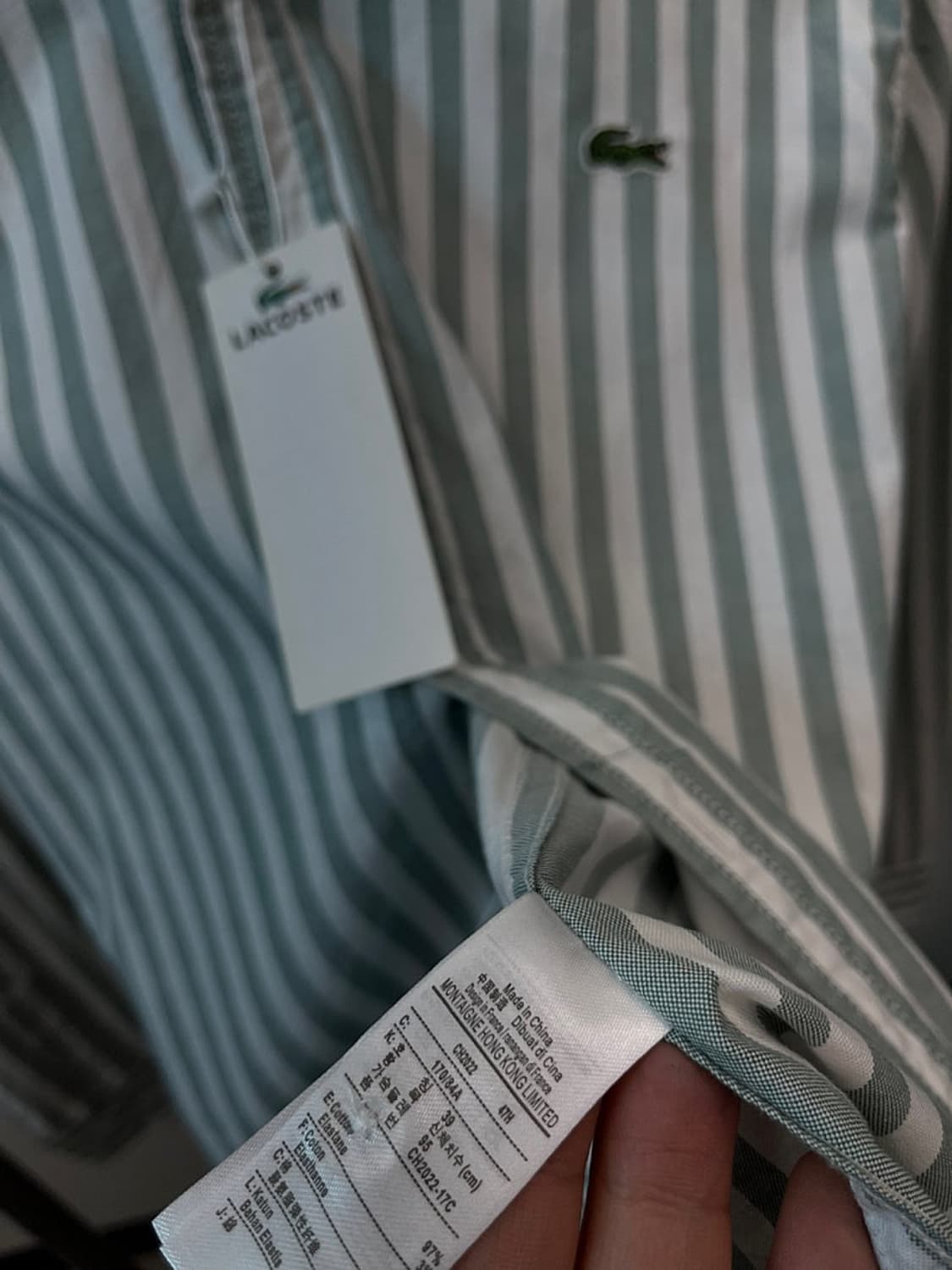 라코스테 사이즈 95 권장 총장 72 가슴단면 50 정품 라코스테 스트라이프 셔츠 디자인과 색상 깔끔하고 이뻐요 어느옷이랑도 매치하기 좋아요 미사용 디자인굿 고가의제품