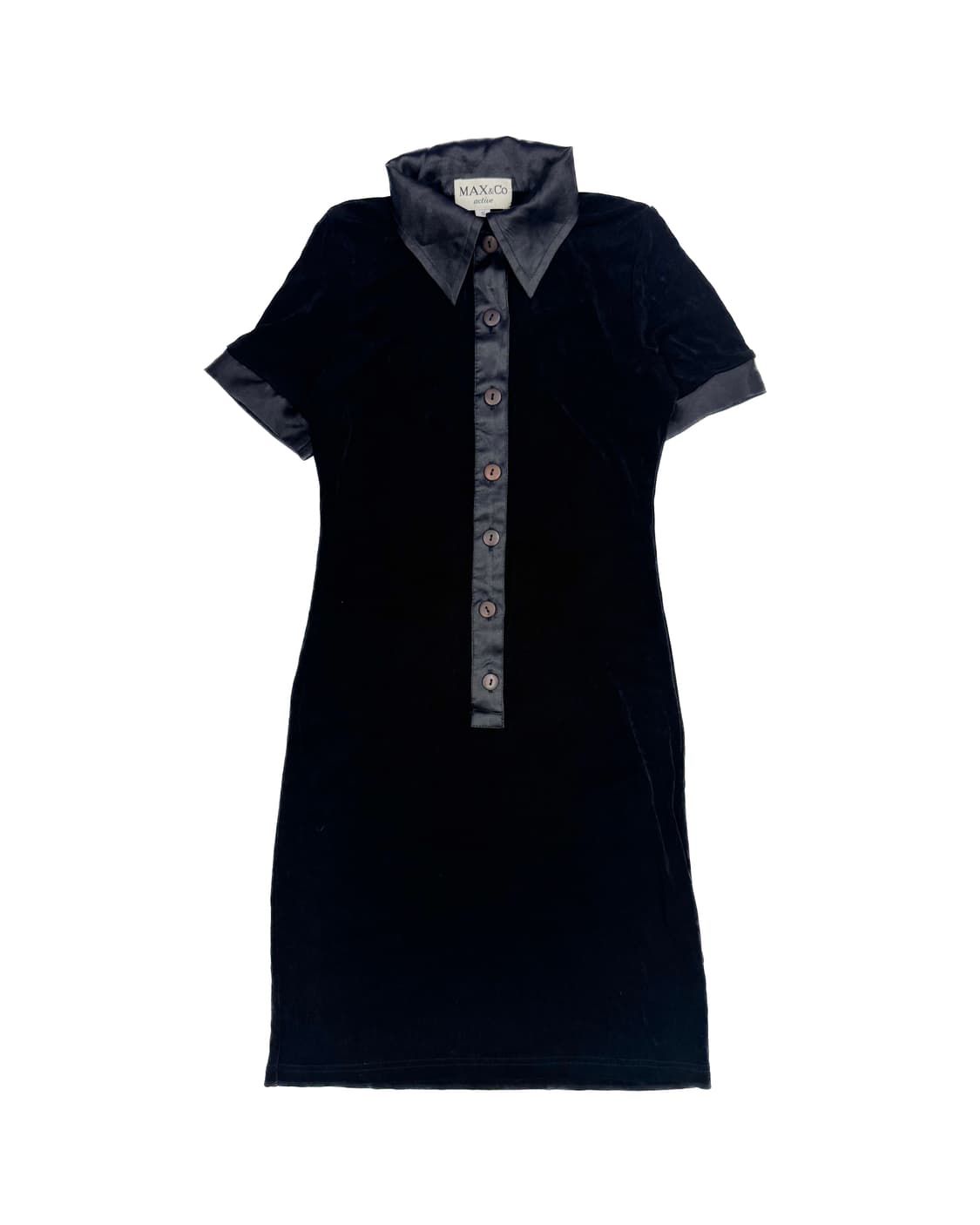 DESCRIPTION -이 원피스는 셔츠 드레스 -광택 있는 새틴 소재로 마감된 칼라, 버튼 플래킷, 소매 끝단이 벨벳 본체와 대조를 이룸 -슬림한 실루엣과 미니멀한 디자인이 우아하면서도 클래식한 분위기를 연출 MATERIALS Acetate 95% Spandex 5% SIZE(cm) 가슴 36 총장 83