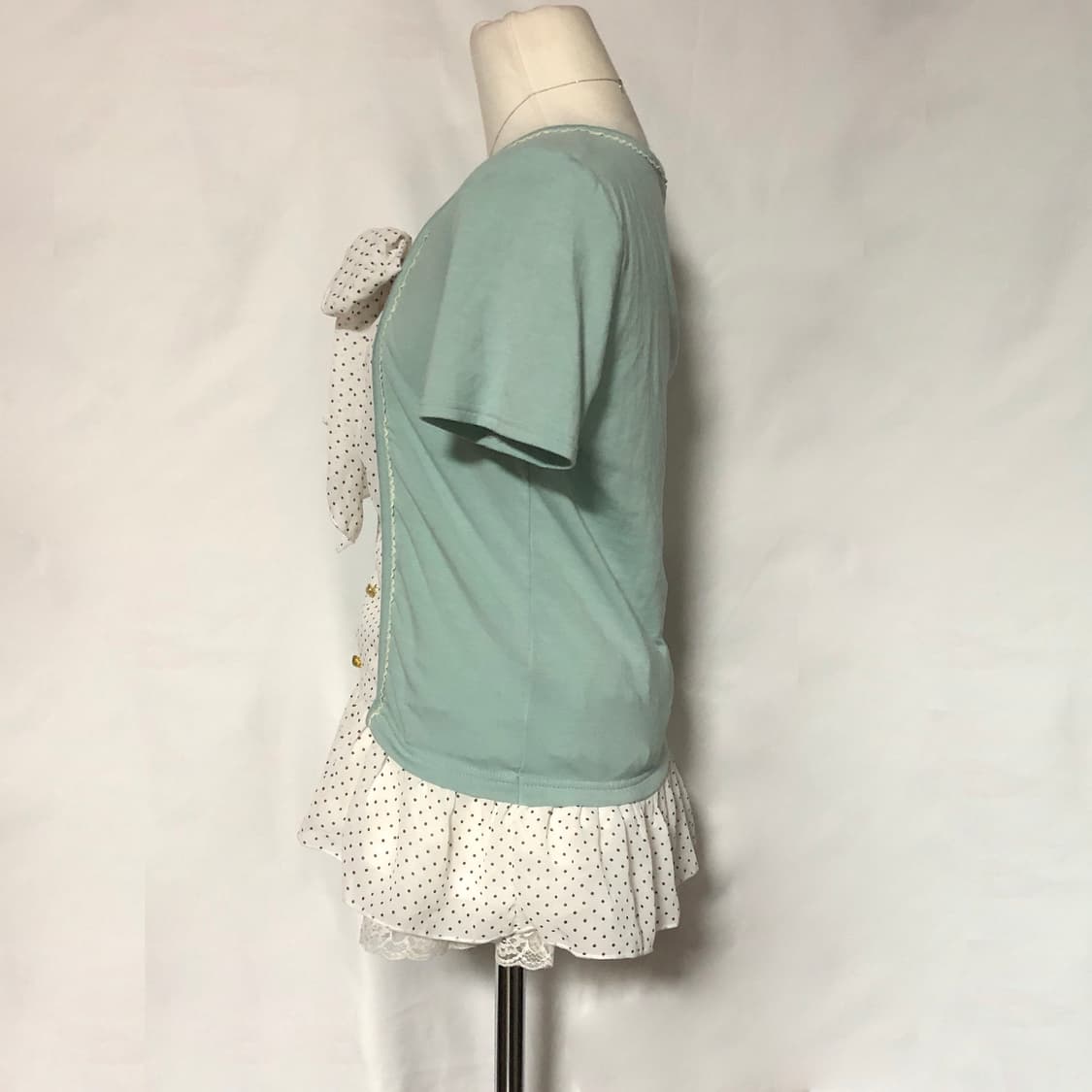 색상 어두운 그린 표기 사이즈 m 상세 사이즈 가슴 단면 41cm 총장 59cm 소매 길이 18cm