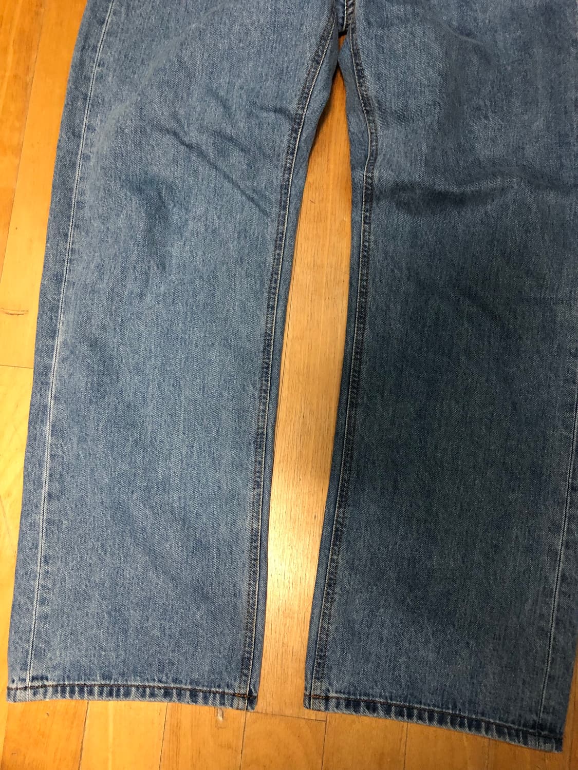 캐쥬얼한 와이드핏으로 활용도 높은 팬츠 사용감 없어 깨끗한 컨디션 허리 42 밑위 29 허벅지 33 밑단 24 기장 104
