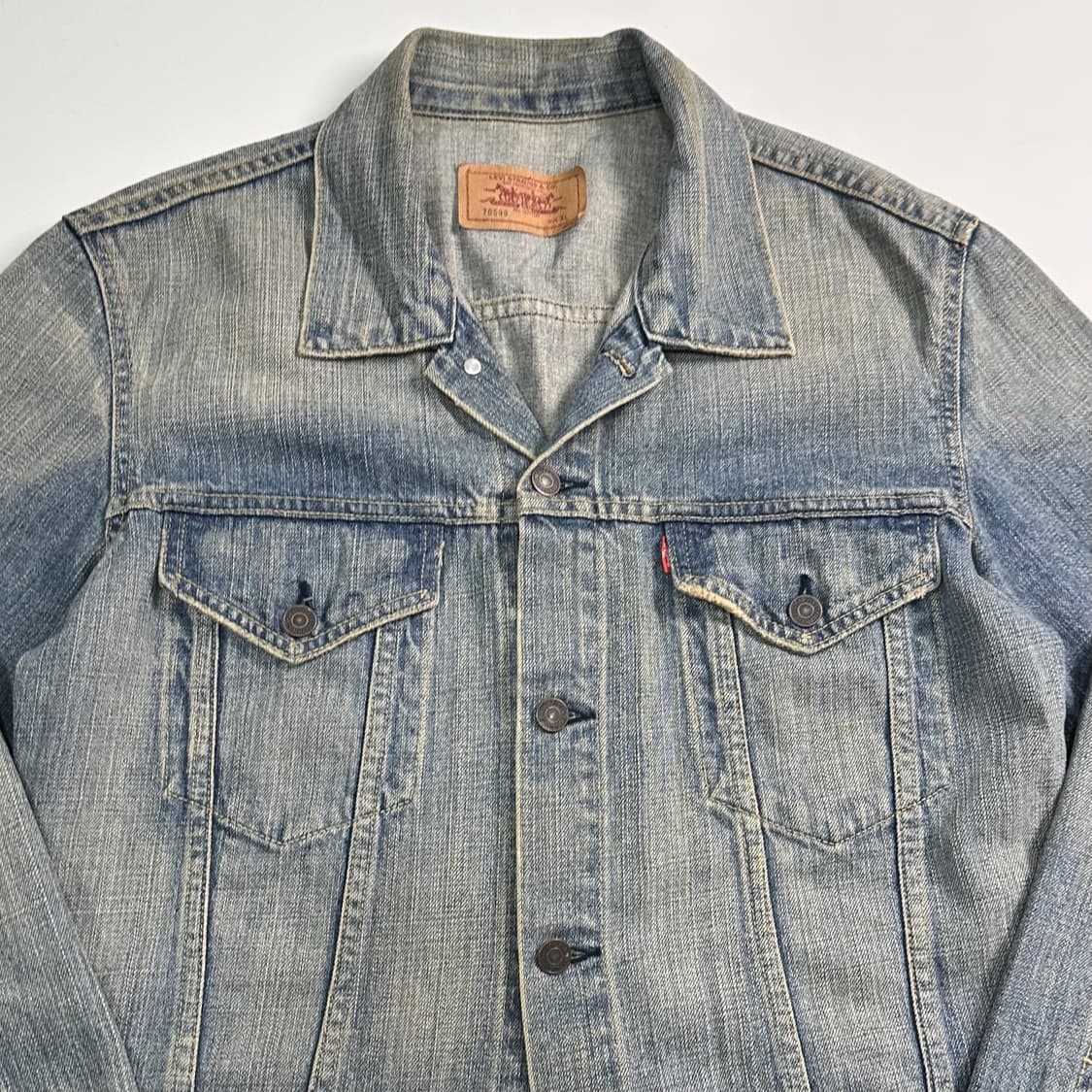 05s 리바이스 3rd 데님 트러커 자켓 05s Levi’s 3rd Denim Trucker Jacket - Price : ₩ 78,000 - Condition : 8/10 - Size : 표기 XL 가슴 57 총장 68 어깨 50 팔길이 63 (100) 빈티지한 워싱이 특징인 제품입니다.