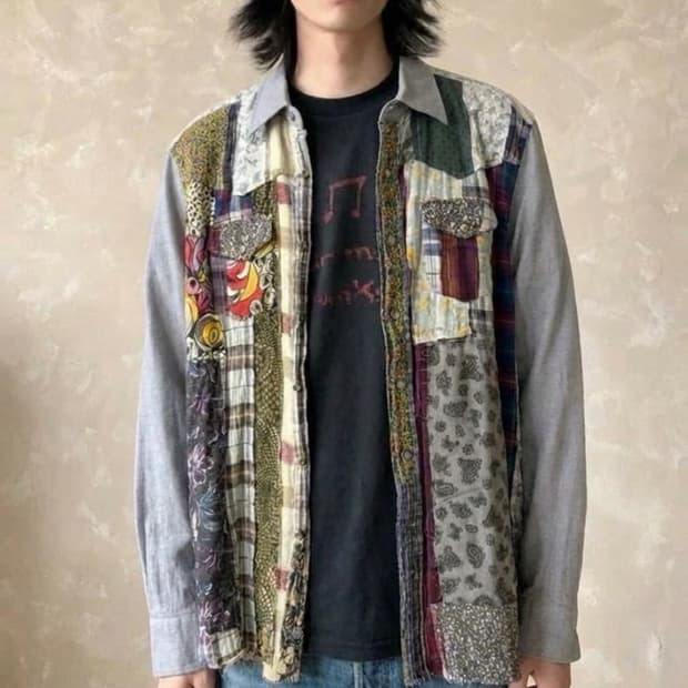 패치워크 디자인이 독특한 체크 셔츠입니다 편하게 입기 좋아요