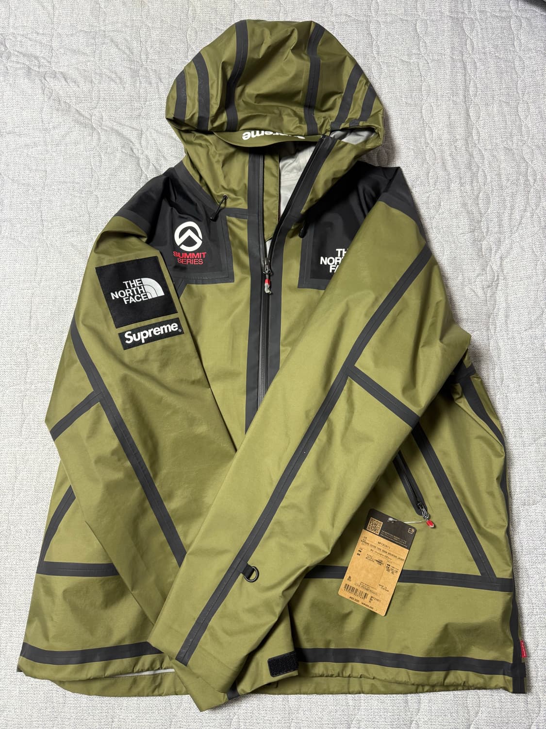 슈프림 x 노스페이스 써밋 아우터 테이프 심 자켓 올리브 색상입니다 택도 안땐 새상품입니다. 소장용으로 가지고 있다가 판매합니다. 현재 크림에서 형성되어있는 가격에 비해 조금 싸게 내놓습니다. 관심있으신분 편하게 연락주세요