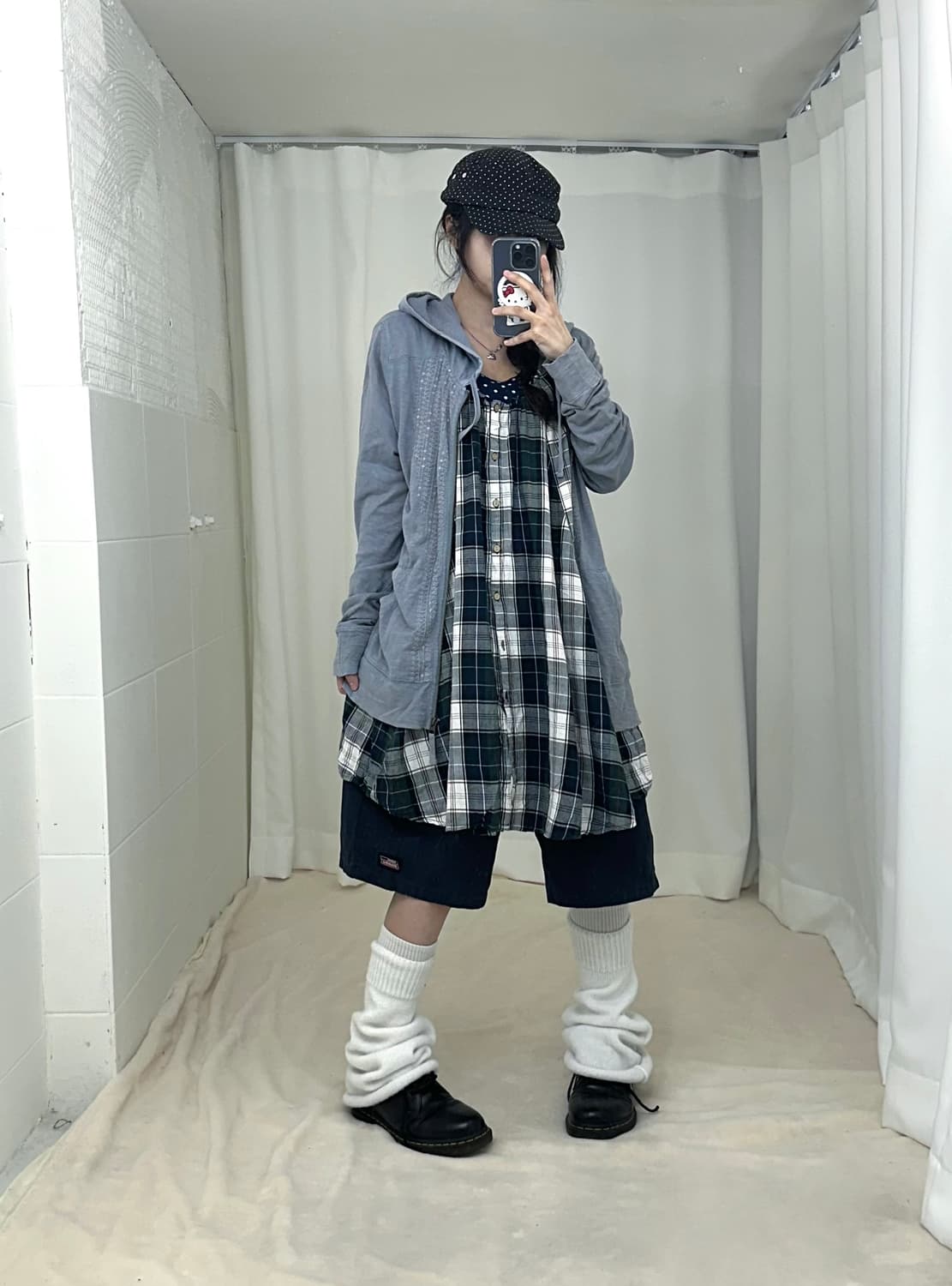 🤍모든 착장 판매상품🤍 코디 세트 구매시 할인 • outer : 빈티지 자수 후드집업 - 3.8 • one-piece : 빈티지 체크 모리 원피스 - sold out • top : 빈티지 도트 레이어드 나시 - 3.0 • bottom : 디키즈 네이비 하프 팬츠 - 5.5 #스윙홍대구매가능