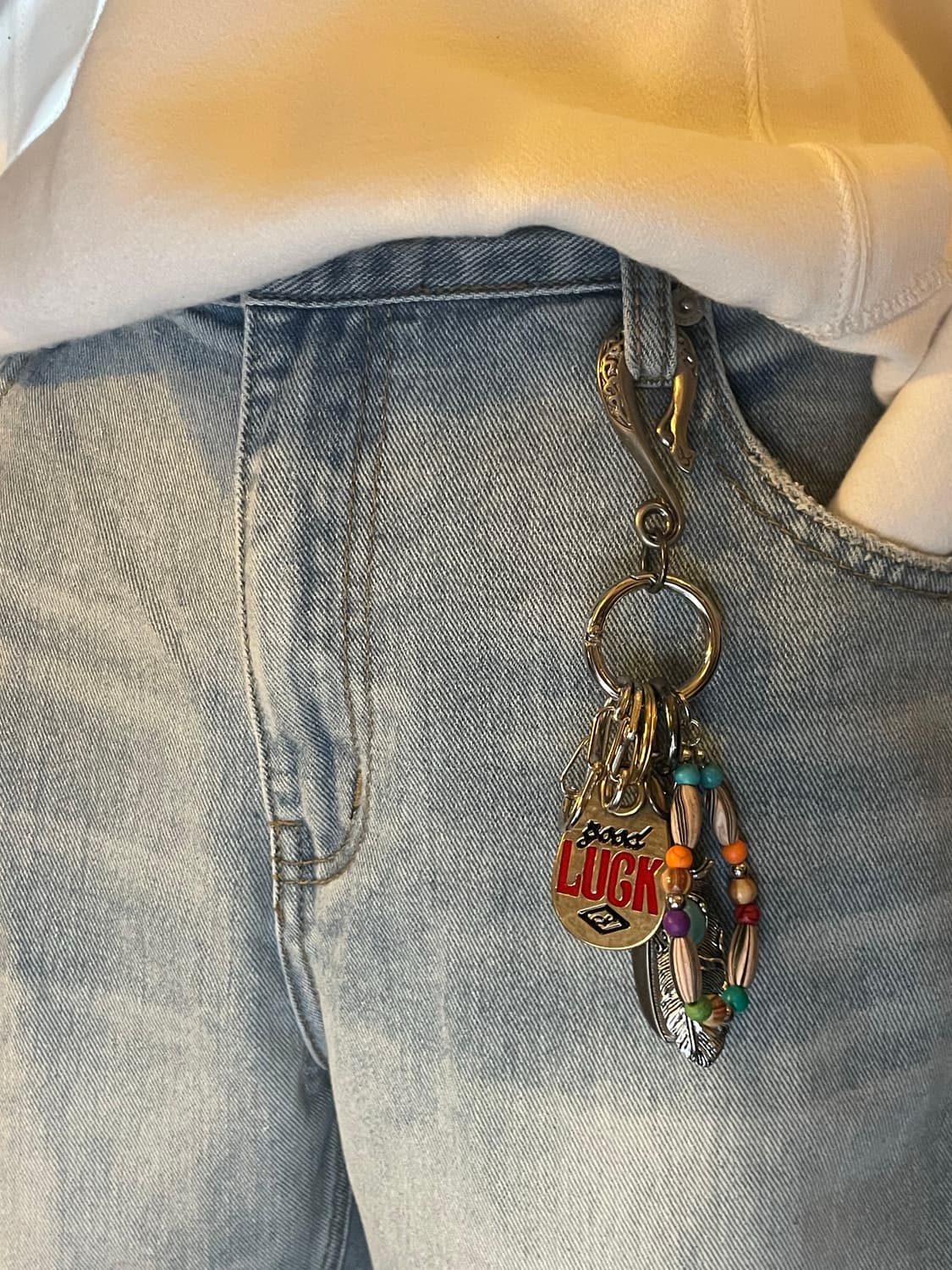 자유로운 감성과 행운의 기운을 담은 Lucky Feather Charm Keyring. 레드 “Good Luck” 참이 눈에 띄는 메시지를 전달하며, 빈티지한 깃털 참들과 터키석 포인트, 컬러풀한 비즈 고리 장식이 경쾌하면서도 이국적인 분위기를 완성합니다. 상단의 엔틱 훅형 고리는 가방, 벨트, 키링 등 다양한 곳에 쉽게 탈부착할 수 있어 실용성과 스타일을 동시에 갖춘 아이템입니다. 오늘도 당신의 하루에 행운이 함께하길.