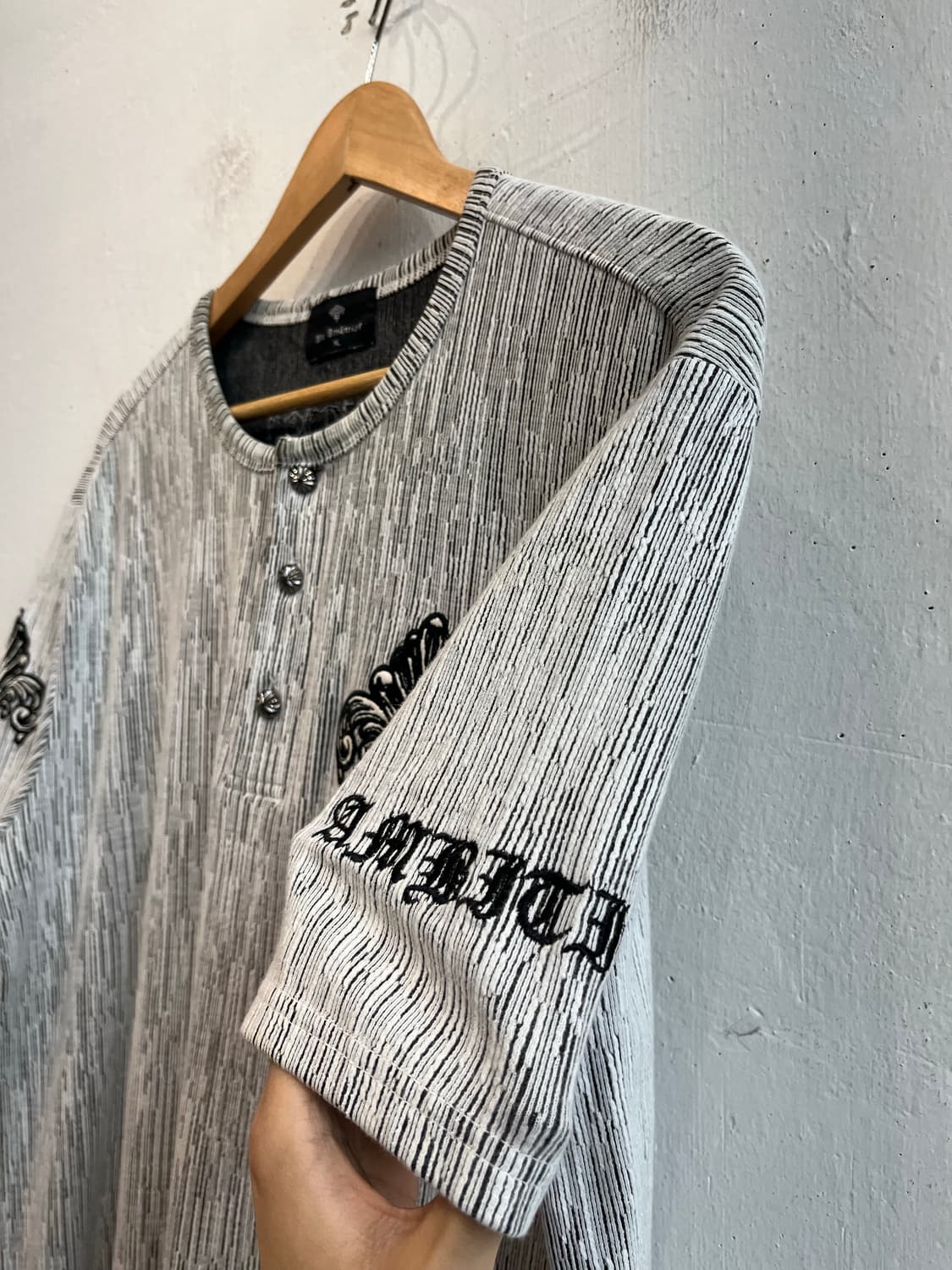 일본빈티지 Be Ambition 락펑크 헨리넥 반팔 티셔츠 - 독특하게 가공된 일본 Be Ambition사의 락펑크 무드 헨리넥 반팔 - 좋은 컨디션 어깨49 가슴단면54 총장70 팔길이23 250515