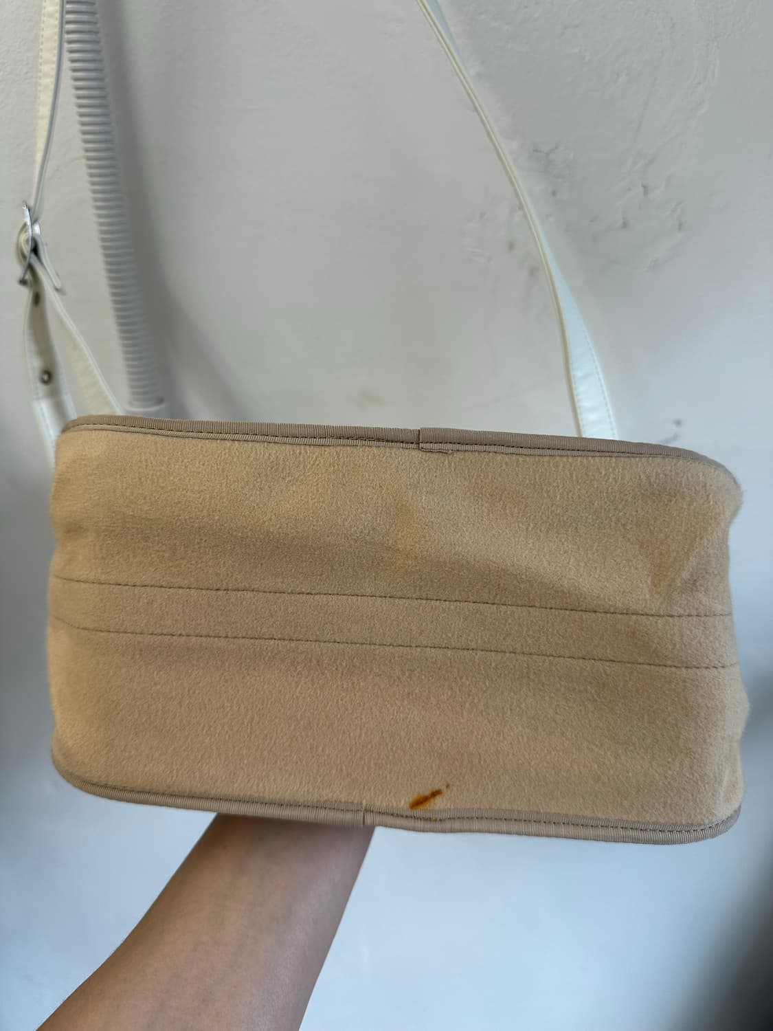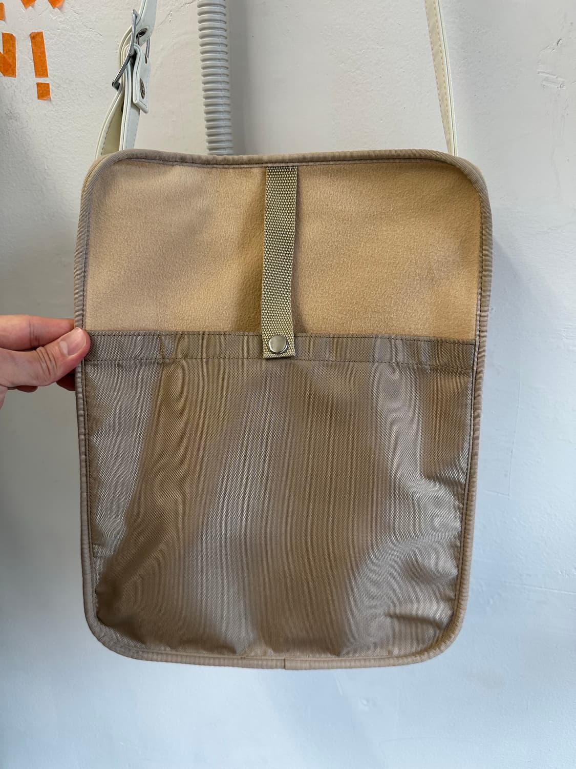 Size : 가로25 세로33 폭13cm Condition : B+ Price : 139,000 Made Years : 2010 * 울과 나일론 소재가 믹스된 꼼데가르송 크로스백 * 세련된 베이지 톤온톤 컬러 * 화이트 레더 스트랩 * 눈에 잘 띄지 않는 하단부와 내부 외 굿컨디션