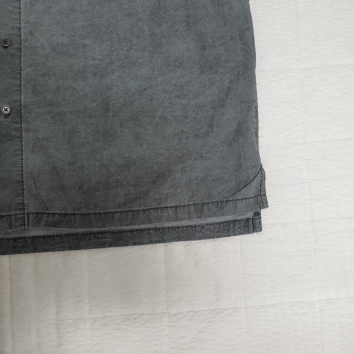 단면 67 총기장 78 회색 오버핏 반팔 셔츠 남방입니다. 택에는 L표기 되어있으나 품이 크게나와서 사이즈110에두 여유있습니다. 다른옷이랑 같이 구매시 배송비 무료 중고O 새옷X