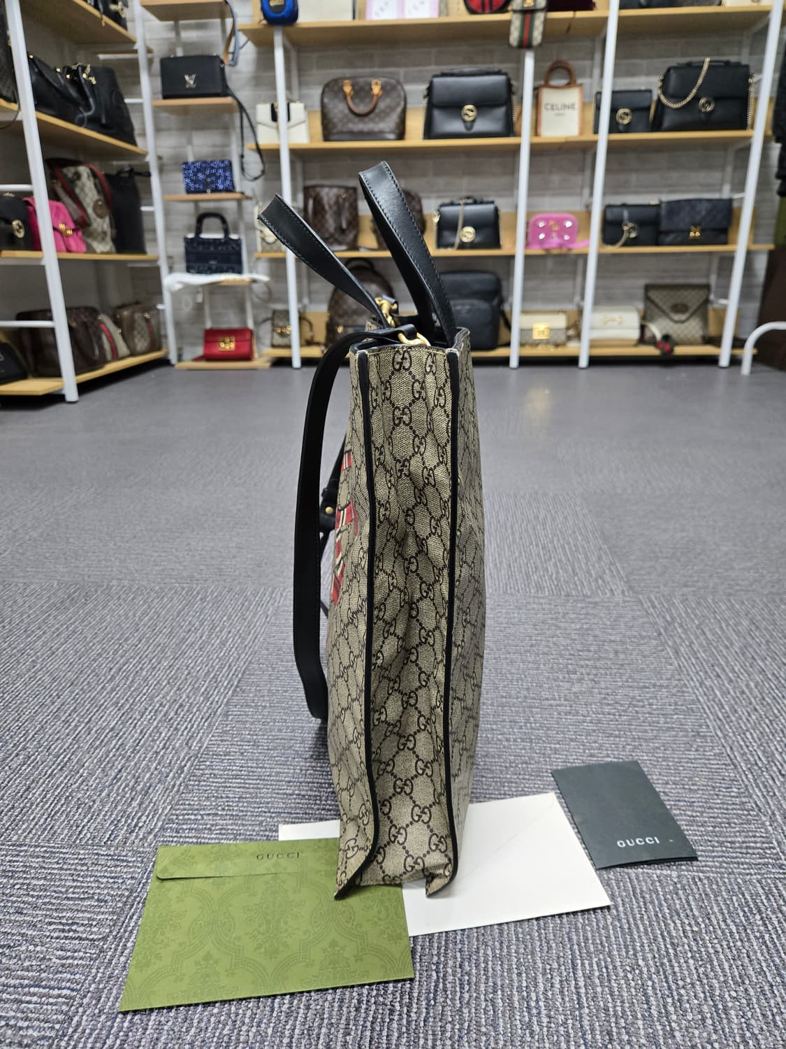안녕하세요. 오늘은 행복한 하루가 되시길 바랍니다. 구찌 스네이크 토트백 매장가 300만원상당 상태 양호[사진참조 앞 뒤 양 옆 게시함] 구성품은 웬만하면 게런티 북랩등 있는 것 위주로 챙겨드리겠습니다 모든 물건 전국 최저가로 맞춰놨습니다 여러개 구매시 할인 들어갑니당 판매하는 상품은 정품 입니다. 정품검수후 판매합니다 만에하나 가품일시 전액 환불 해드리니 걱정마세요. 상품은 최대한 클리닉 및 모서리 유약 등 깔끔하게 복원 정리하여 보내드립니다 쿨거래시 제가 택배비 부담합니다. 웬만하면 당일택배를 원칙으로 편의점 또는 우체국 택배로 보내드립니다
