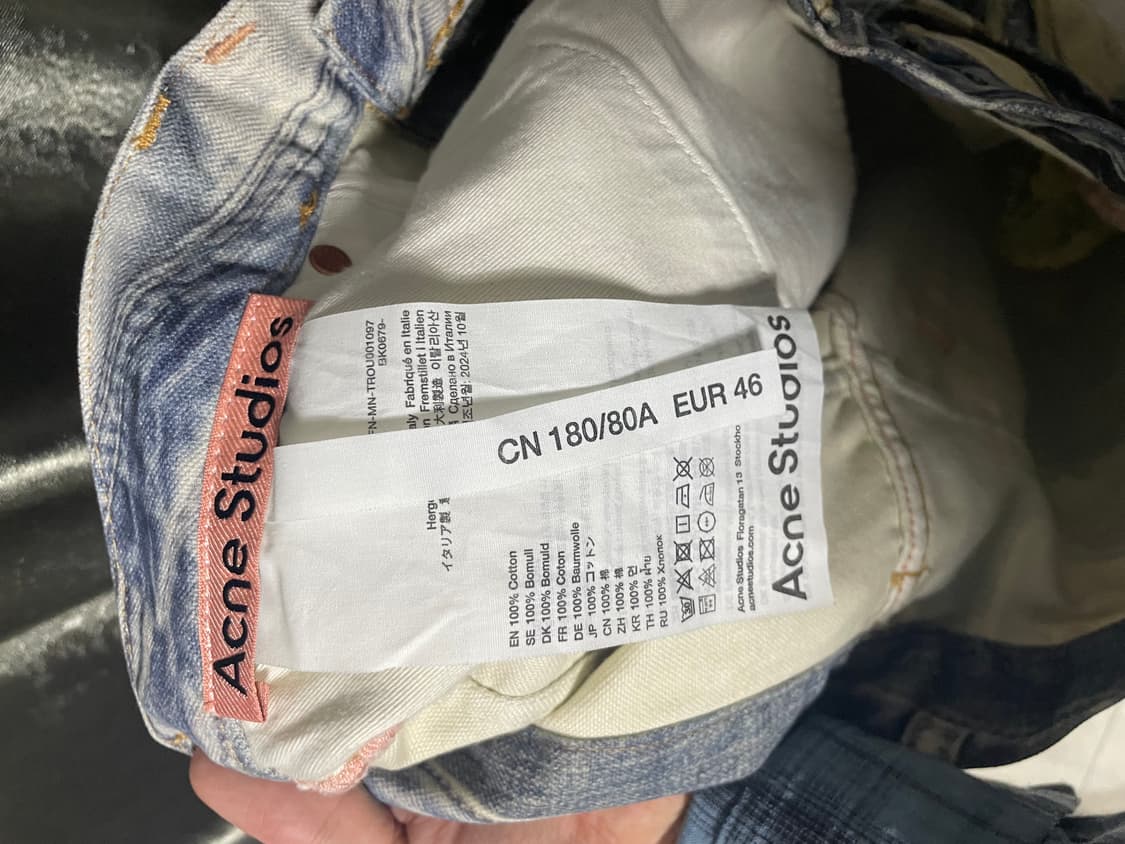 공홈에서 판매중인 제품으로 찢어진 낙서 느낌의 프린팅이 포인트인 청바지입니다. 새제품으로 관심 있으신 분들 연락주세요. *상품 정보 https://www.acnestudios.com/kr/ko/super-baggy-fit-jeans---2023-mid-blue/BK0679-863.html?g=man 미드웨이스트 와이드 레그 시즌 '찢어진 낙서' 트롱프뢰유 프린트 5포켓 데님 구조 버튼 여밈 스타일 ID: FN-MN-TROU001097 겉감: 100% 코튼 사이즈 : 46